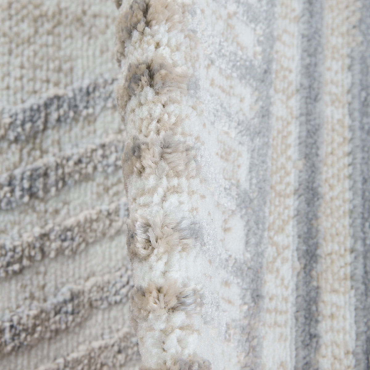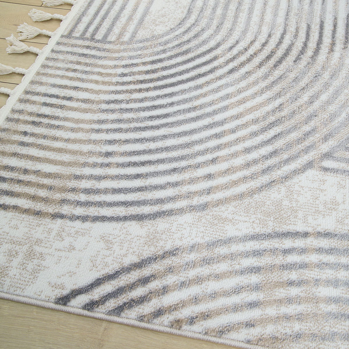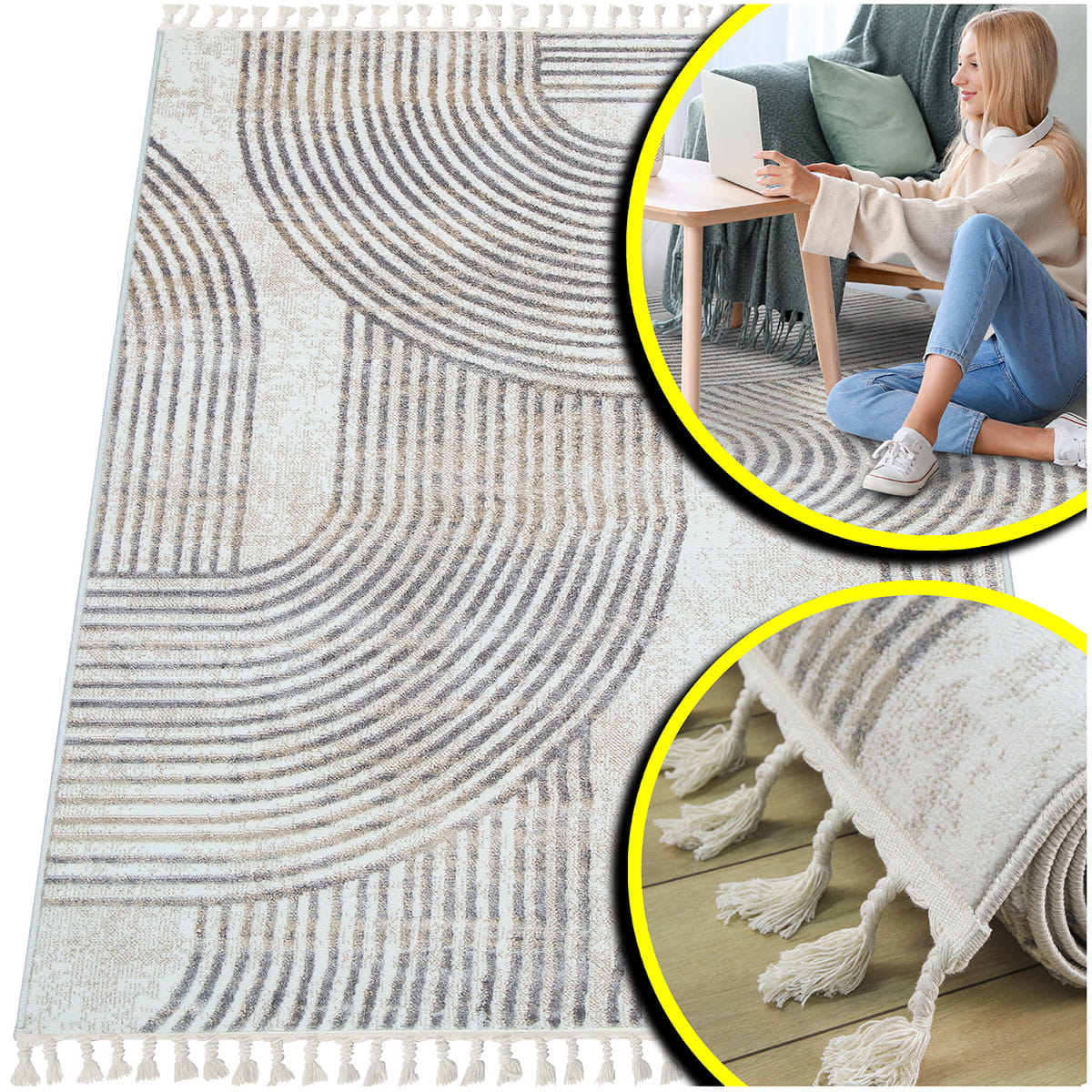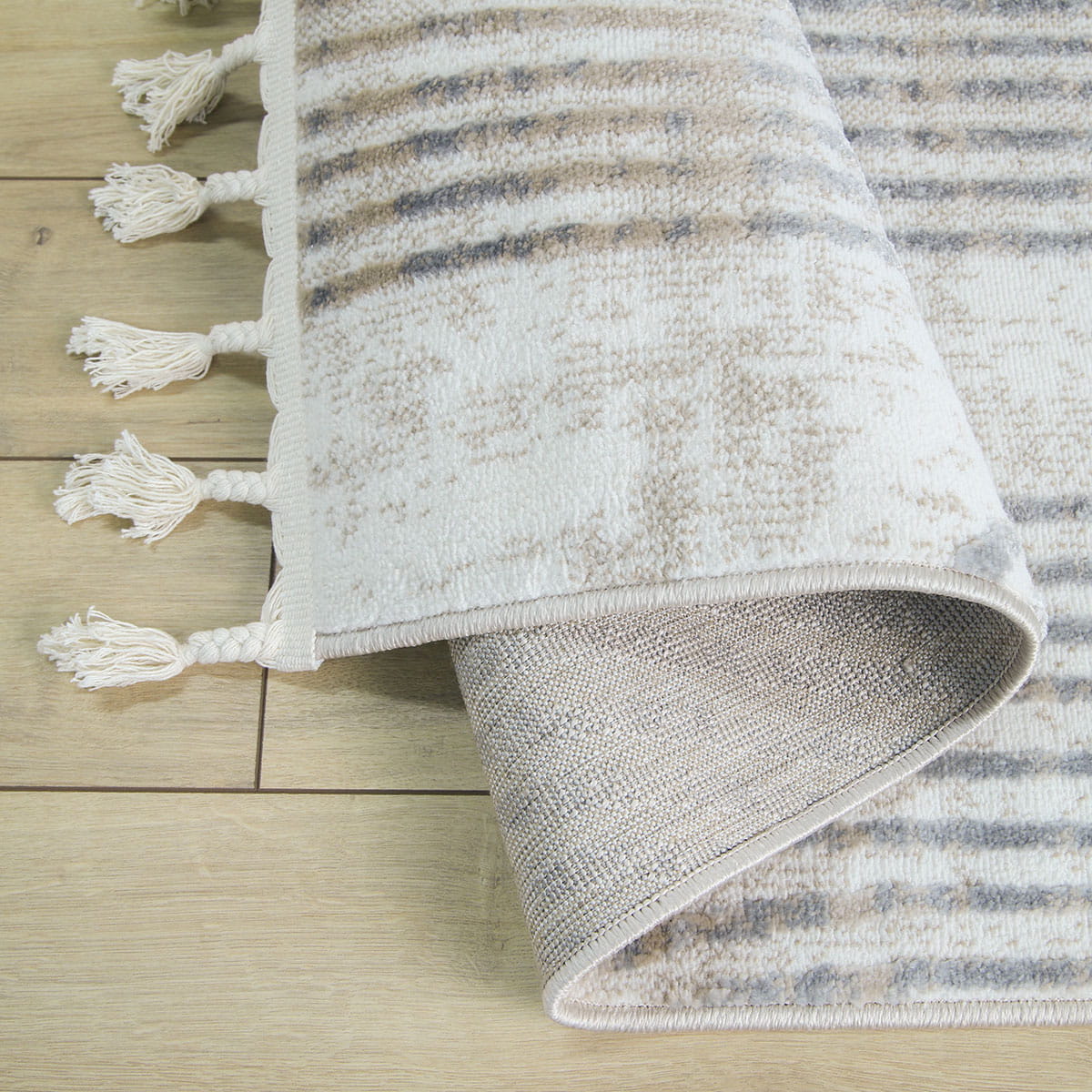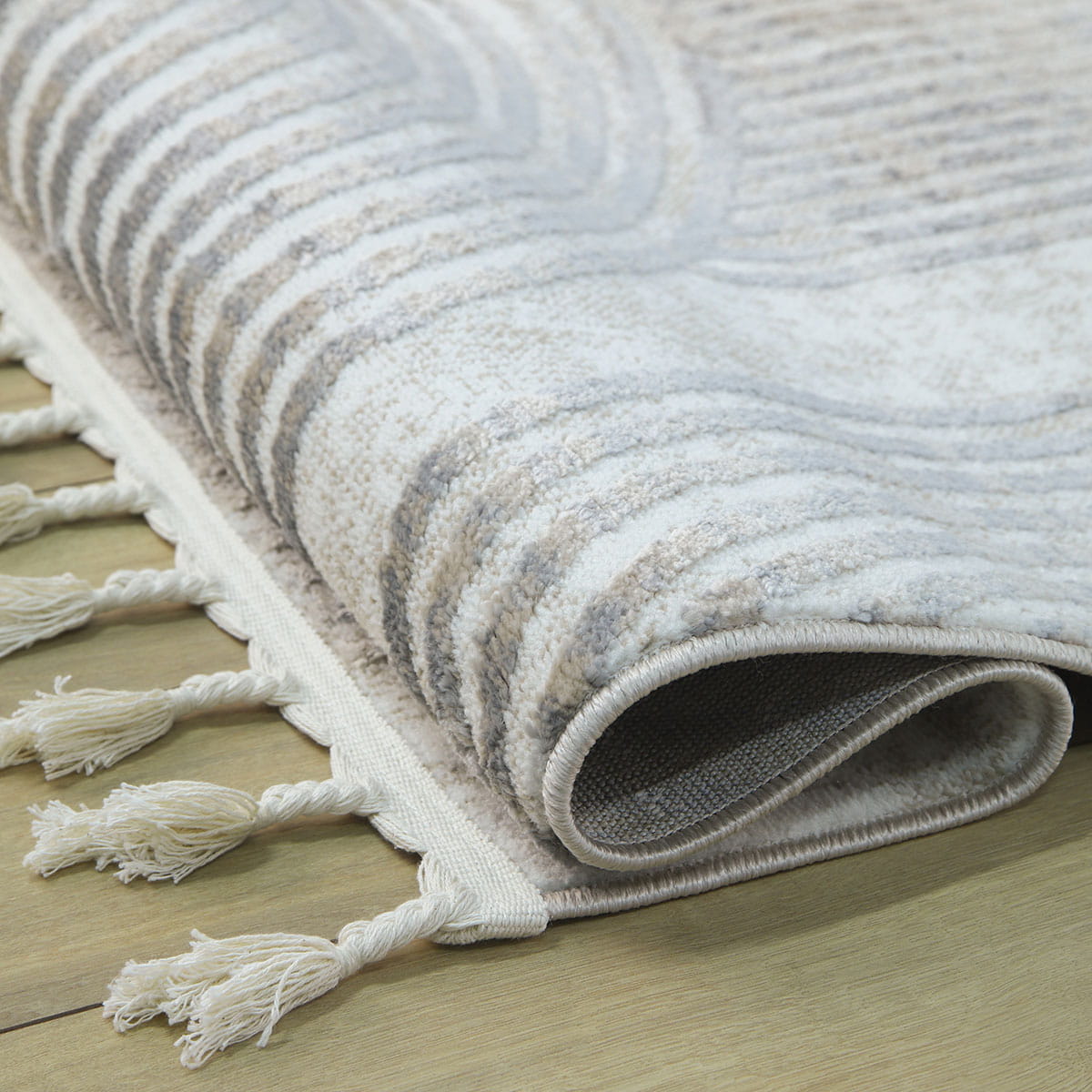 Wchodząc na ten dywan, poczujesz miękkość pod stopami, która otuli Cię przyjemnym ciepłem. Runo o różnej wysokości nie tylko zapewnia niesamowity komfort, ale również dodaje tekstury i głębi. Dodatkowo, dywany te lekko połyskują w zależności od ułożenia runa i kąta padania światła, co nadaje im elegancji i sprawia, że wyglądają jeszcze bardziej luksusowo. Frędzle dopełniają całość, podkreślając wyjątkowy charakter dywanu.