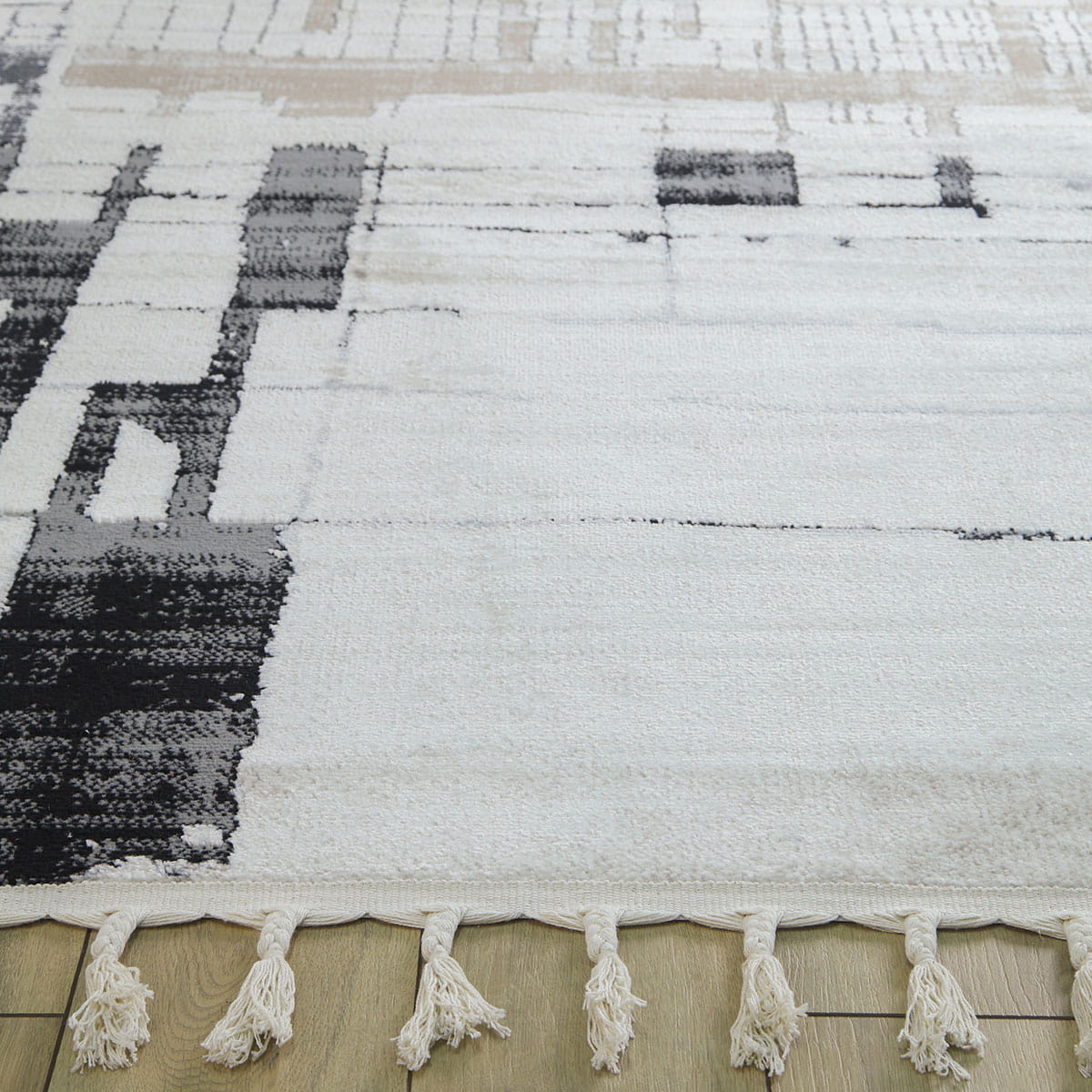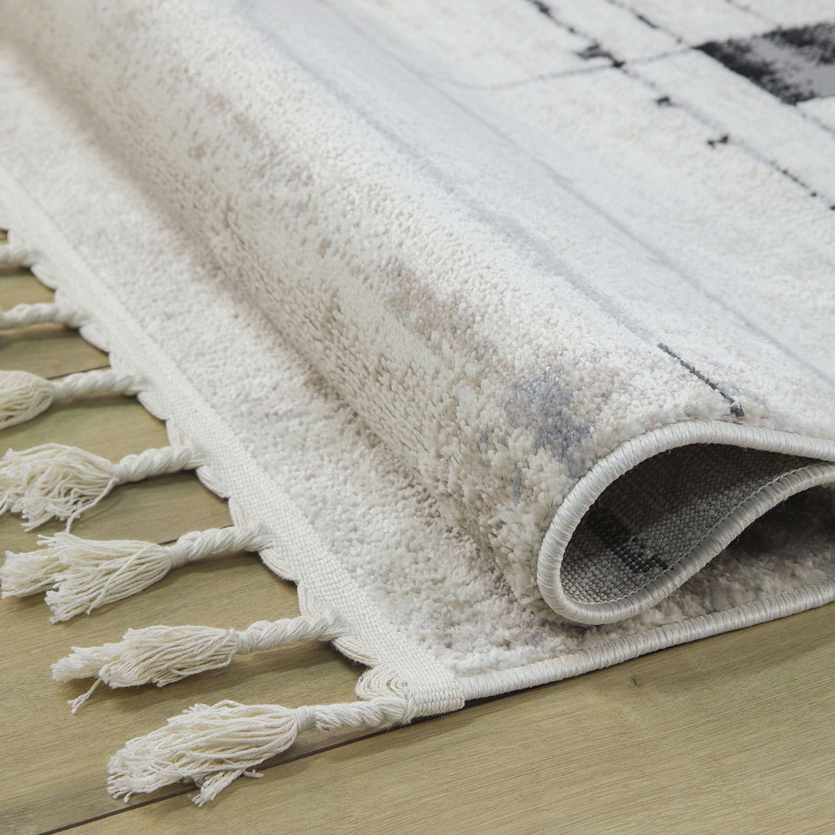 Wchodząc na ten dywan, poczujesz miękkość pod stopami, która otuli Cię przyjemnym ciepłem. Runo o różnej wysokości nie tylko zapewnia niesamowity komfort, ale również dodaje tekstury i głębi. Dodatkowo, dywany te lekko połyskują w zależności od ułożenia runa i kąta padania światła, co nadaje im elegancji i sprawia, że wyglądają jeszcze bardziej luksusowo. Frędzle dopełniają całość, podkreślając wyjątkowy charakter dywanu.