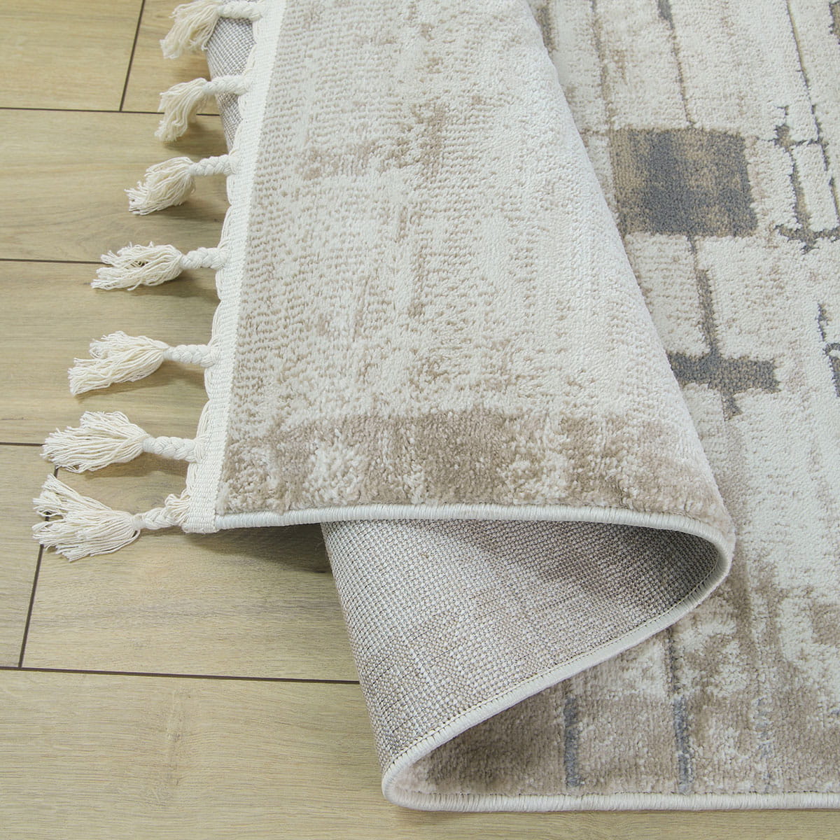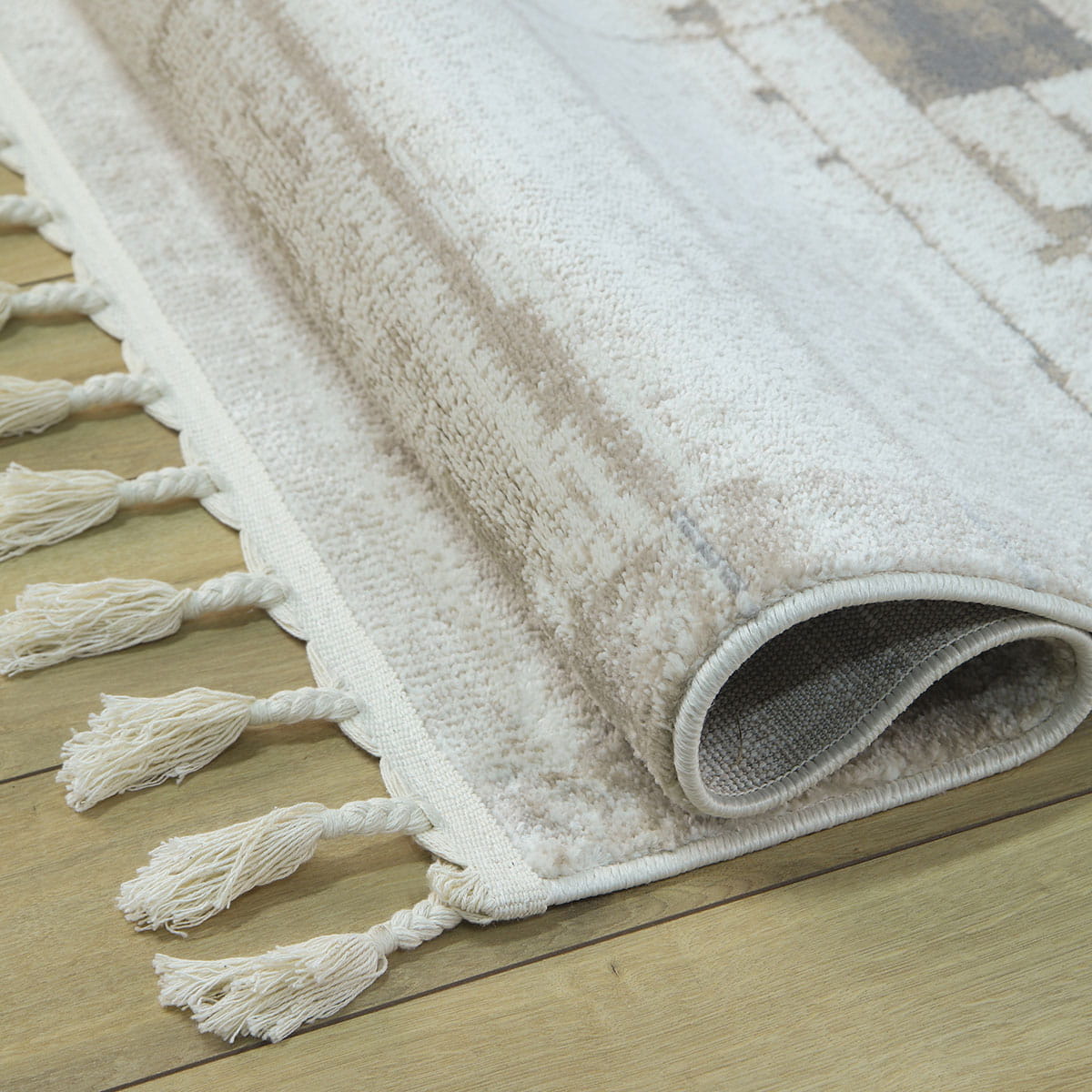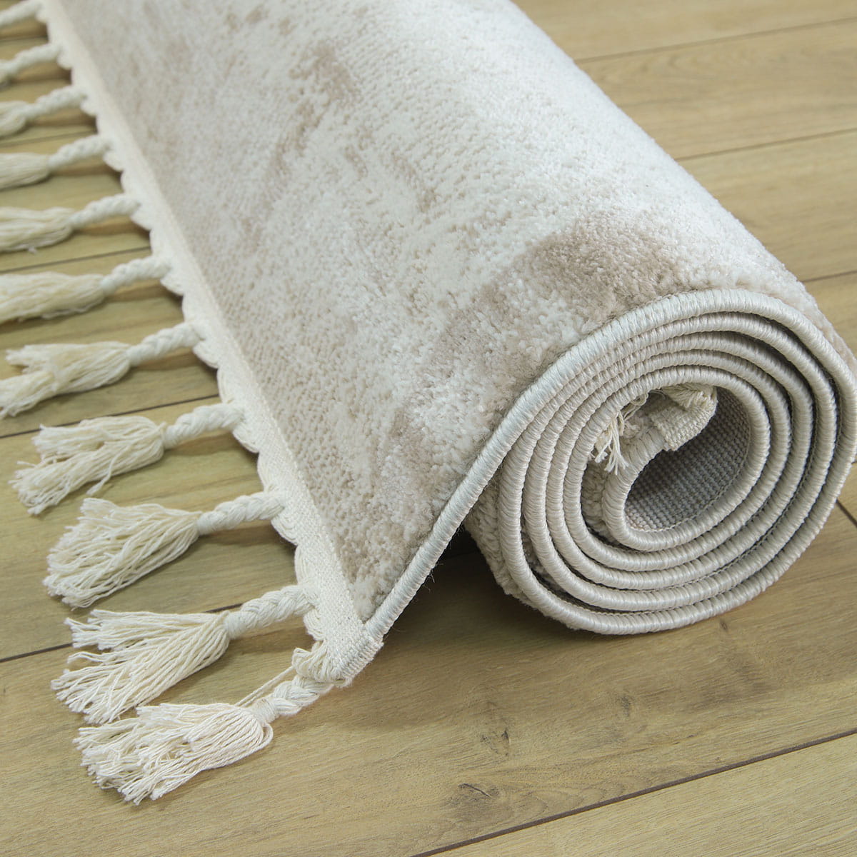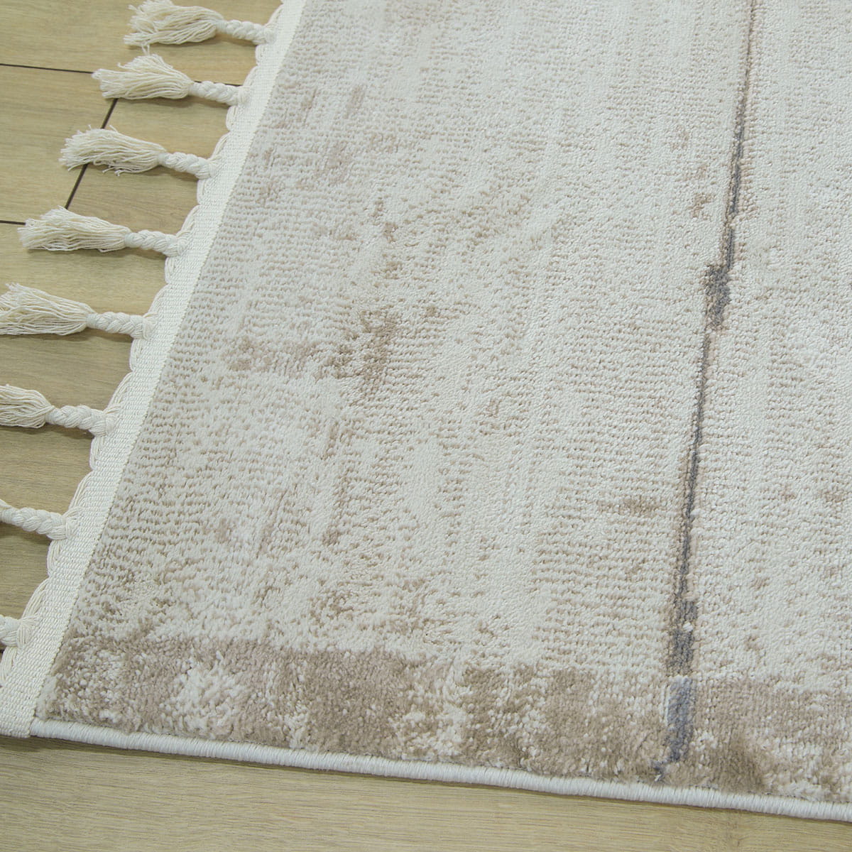 Wchodząc na ten dywan, poczujesz miękkość pod stopami, która otuli Cię przyjemnym ciepłem. Runo o różnej wysokości nie tylko zapewnia niesamowity komfort, ale również dodaje tekstury i głębi. Dodatkowo, dywany te lekko połyskują w zależności od ułożenia runa i kąta padania światła, co nadaje im elegancji i sprawia, że wyglądają jeszcze bardziej luksusowo. Frędzle dopełniają całość, podkreślając wyjątkowy charakter dywanu.