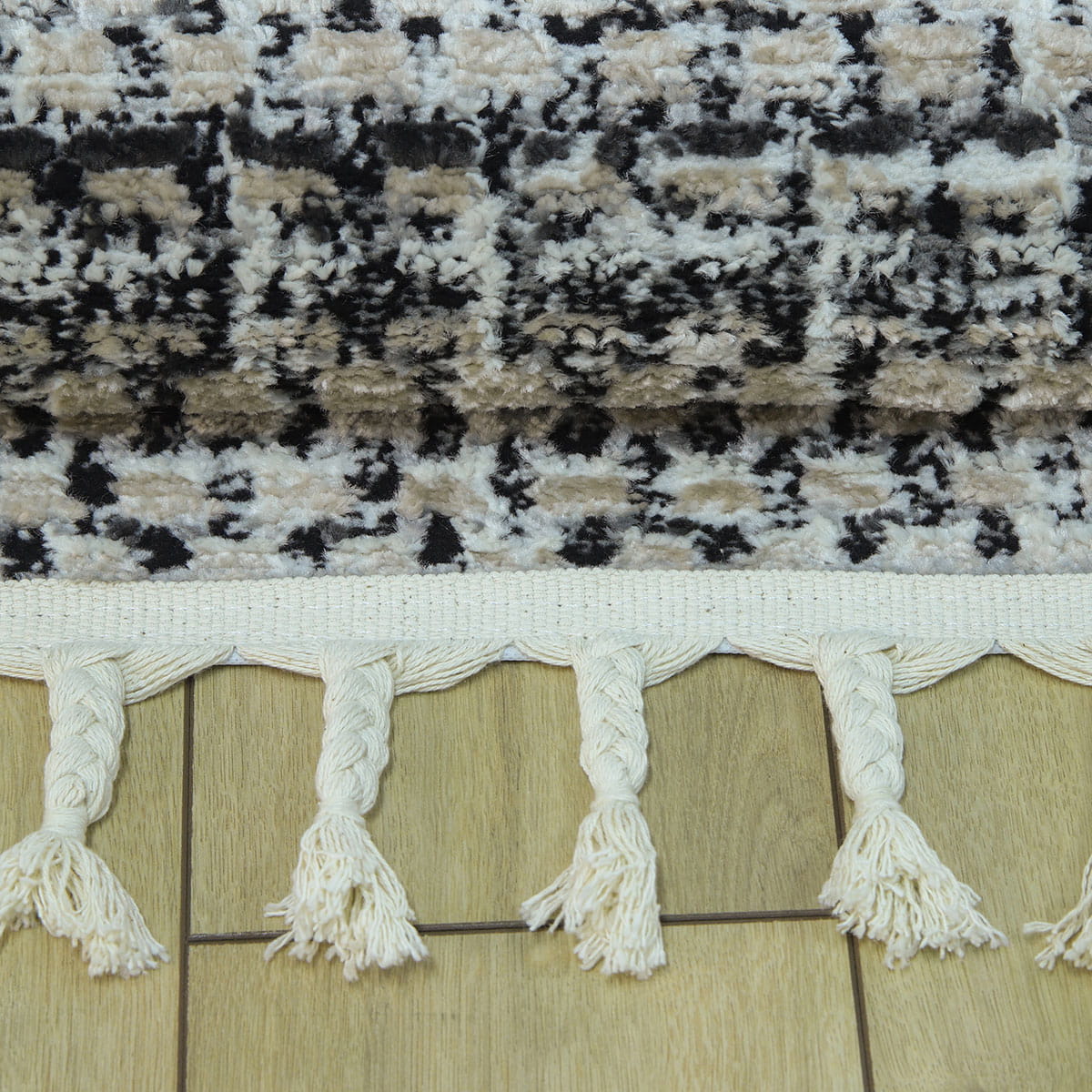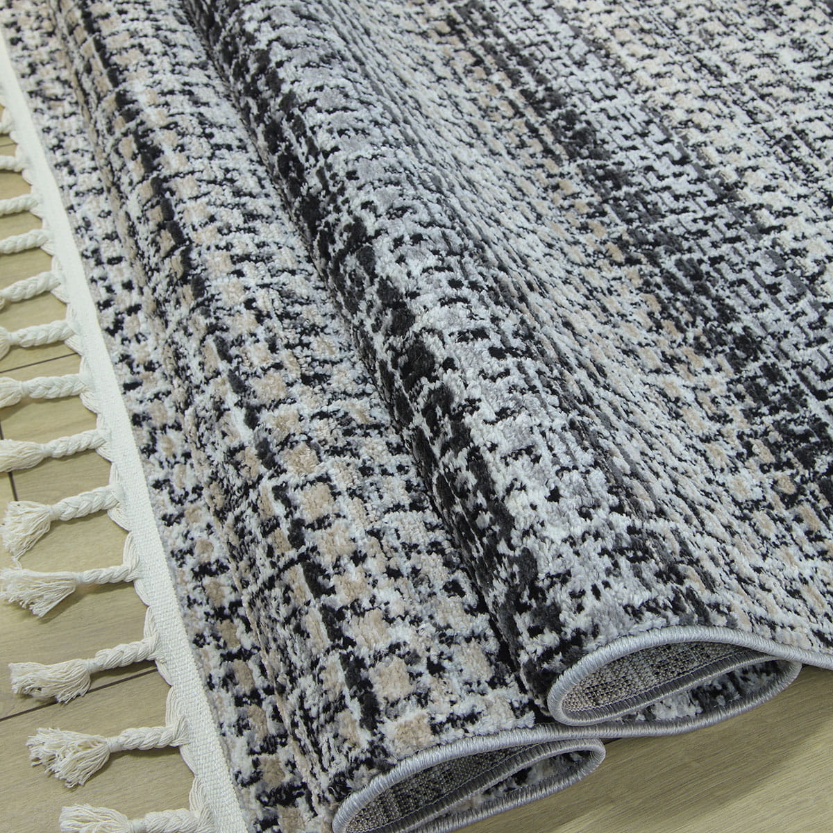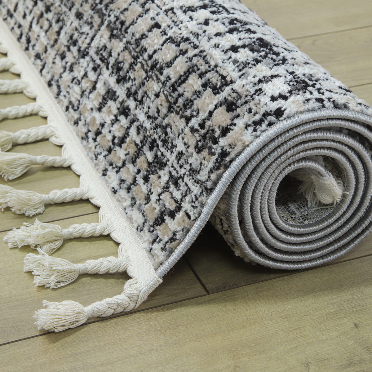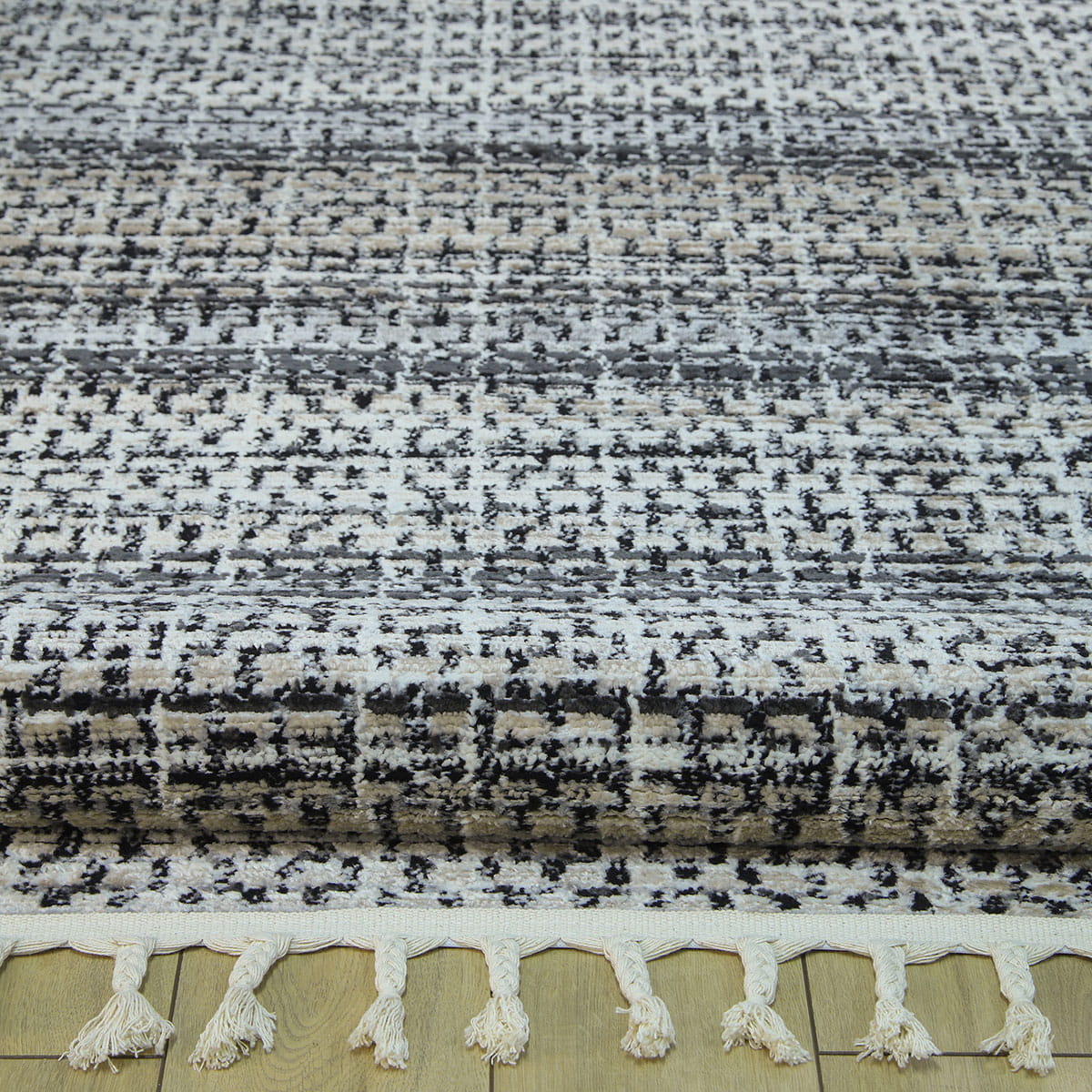 Wchodząc na ten dywan, poczujesz miękkość pod stopami, która otuli Cię przyjemnym ciepłem. Runo o różnej wysokości nie tylko zapewnia niesamowity komfort, ale również dodaje tekstury i głębi. Dodatkowo, dywany te lekko połyskują w zależności od ułożenia runa i kąta padania światła, co nadaje im elegancji i sprawia, że wyglądają jeszcze bardziej luksusowo. Frędzle dopełniają całość, podkreślając wyjątkowy charakter dywanu.