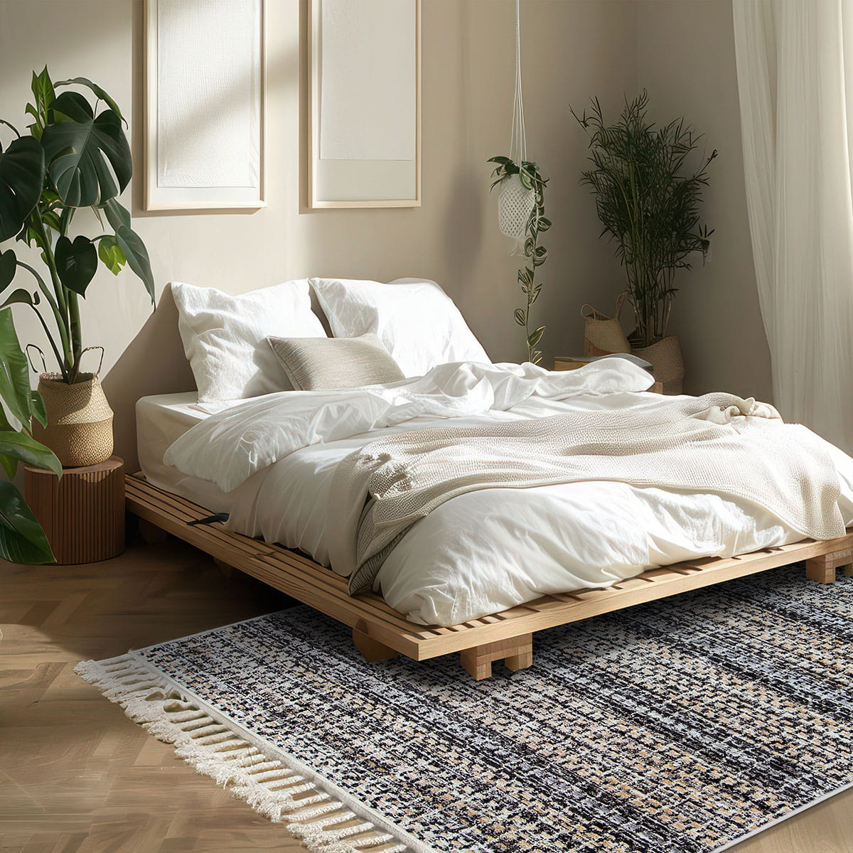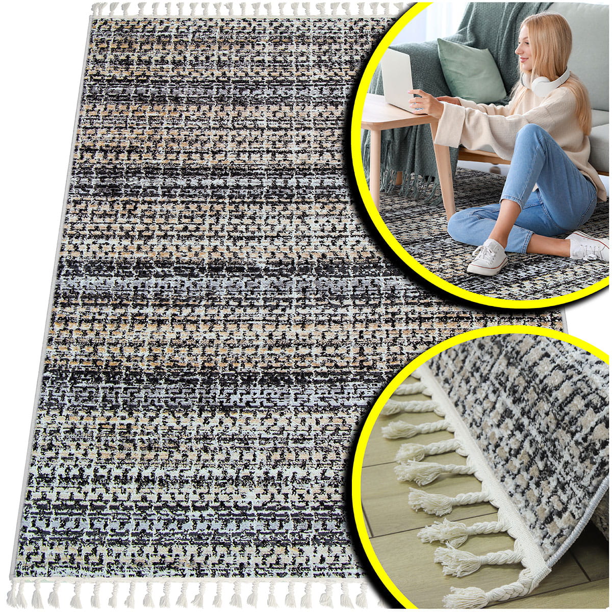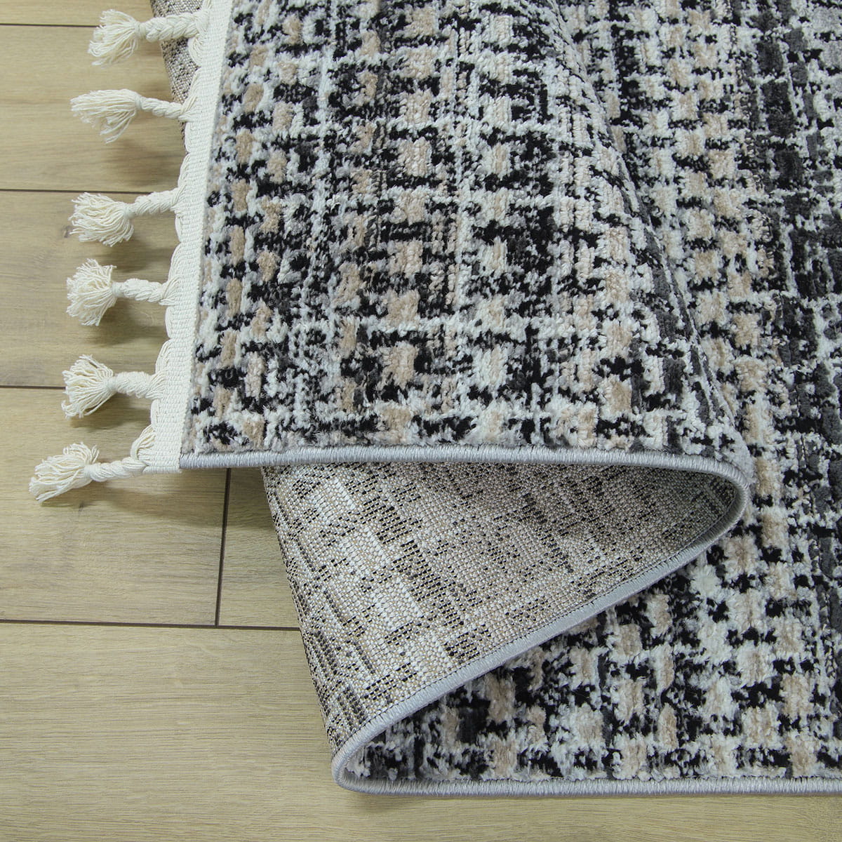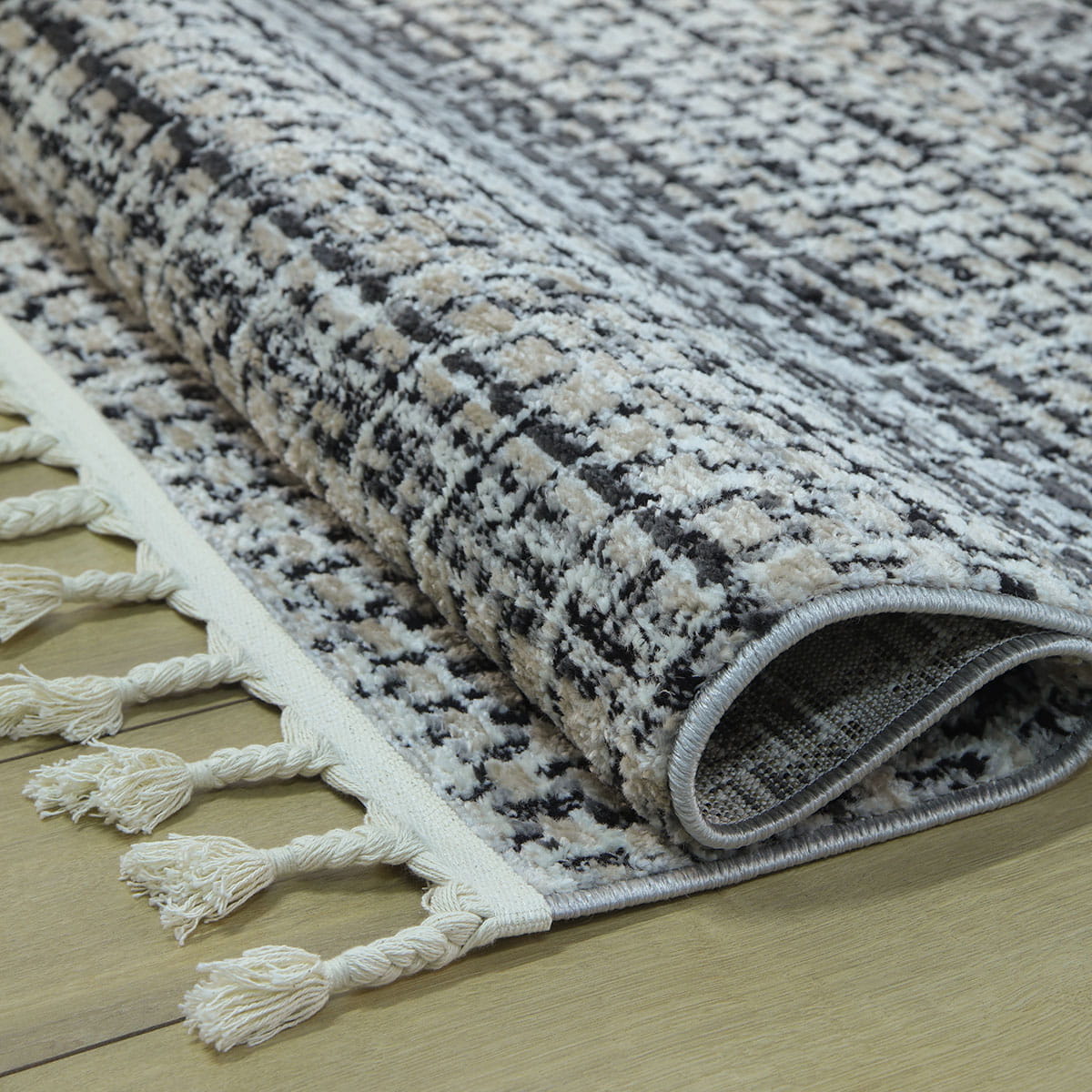 Wchodząc na ten dywan, poczujesz miękkość pod stopami, która otuli Cię przyjemnym ciepłem. Runo o różnej wysokości nie tylko zapewnia niesamowity komfort, ale również dodaje tekstury i głębi. Dodatkowo, dywany te lekko połyskują w zależności od ułożenia runa i kąta padania światła, co nadaje im elegancji i sprawia, że wyglądają jeszcze bardziej luksusowo. Frędzle dopełniają całość, podkreślając wyjątkowy charakter dywanu.