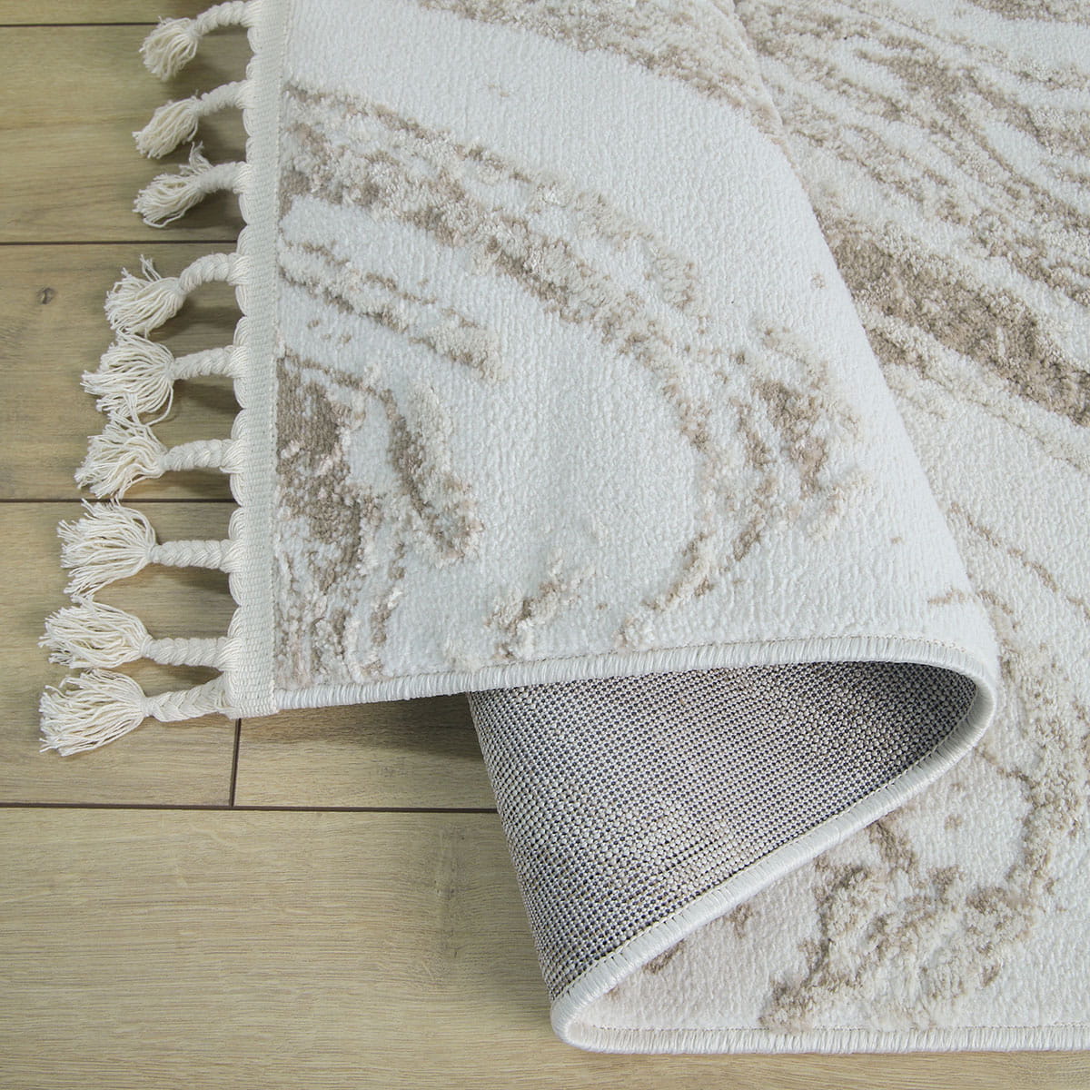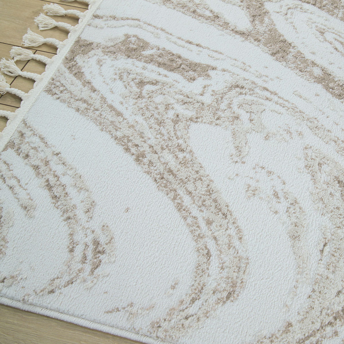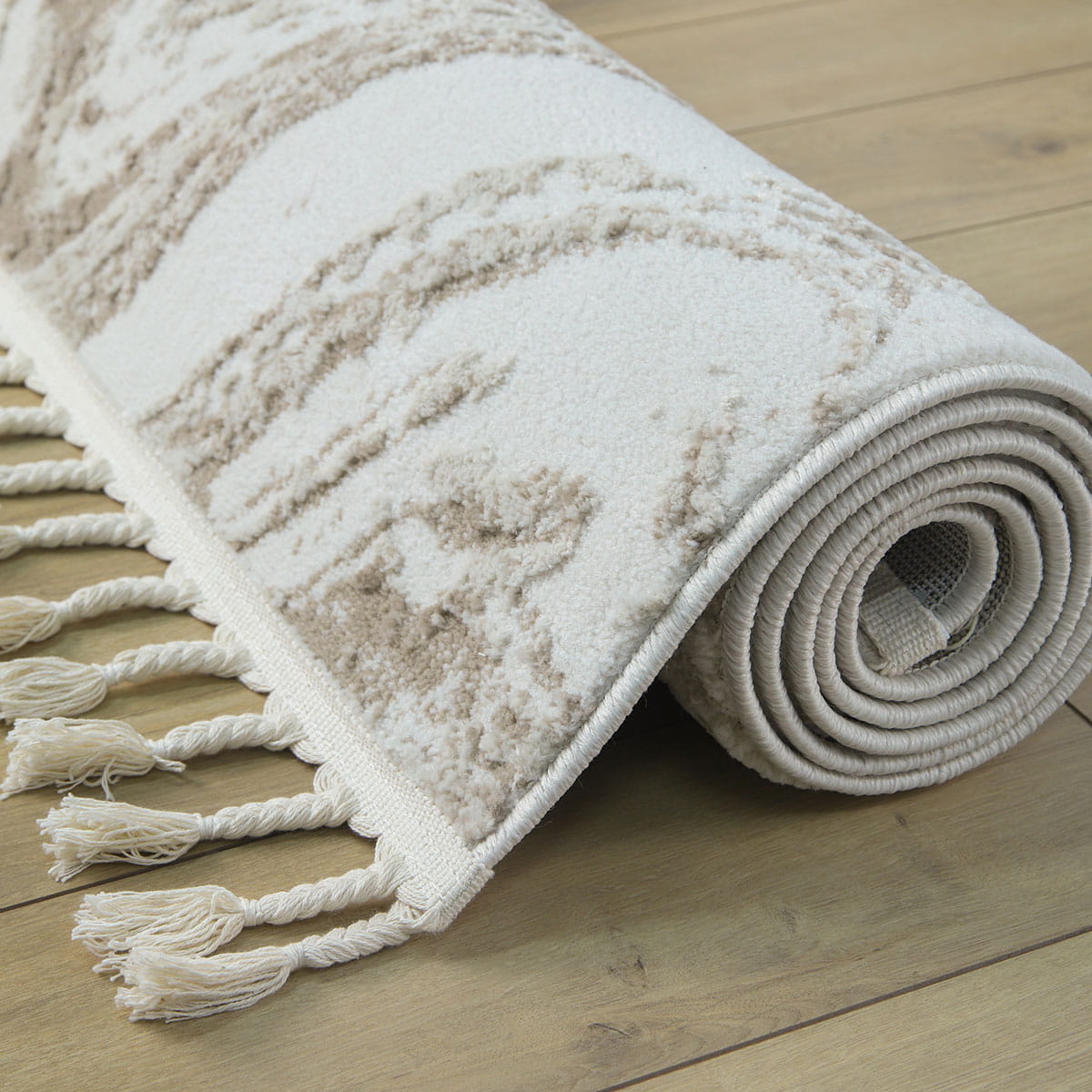 Wchodząc na ten dywan, poczujesz miękkość pod stopami, która otuli Cię przyjemnym ciepłem. Runo o różnej wysokości nie tylko zapewnia niesamowity komfort, ale również dodaje tekstury i głębi. Dodatkowo, dywany te lekko połyskują w zależności od ułożenia runa i kąta padania światła, co nadaje im elegancji i sprawia, że wyglądają jeszcze bardziej luksusowo. Frędzle dopełniają całość, podkreślając wyjątkowy charakter dywanu.