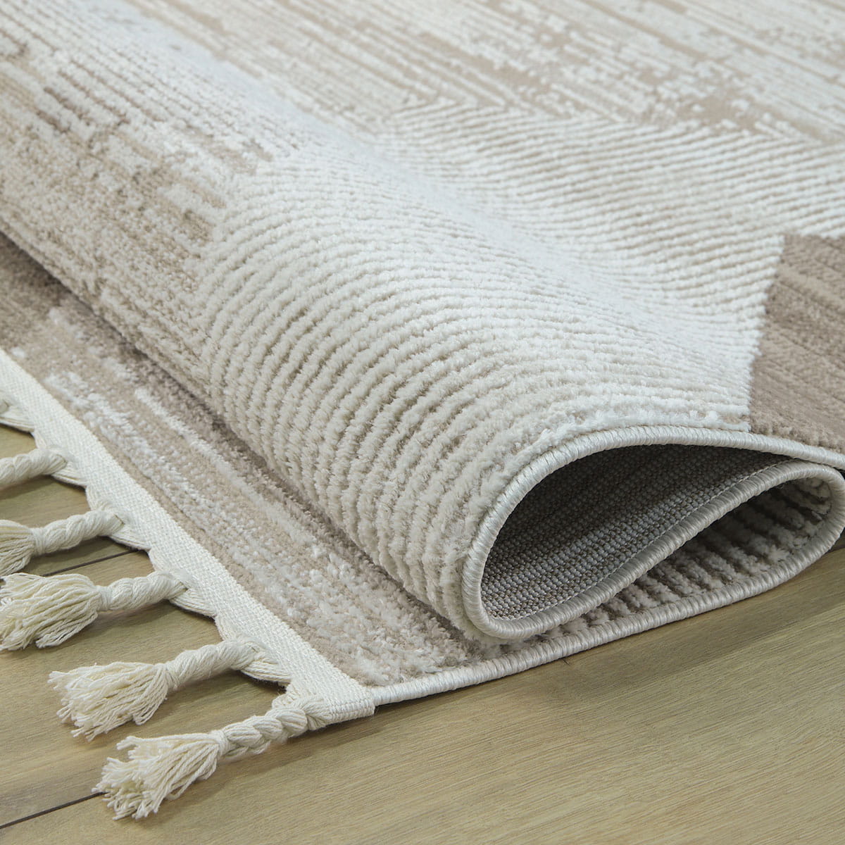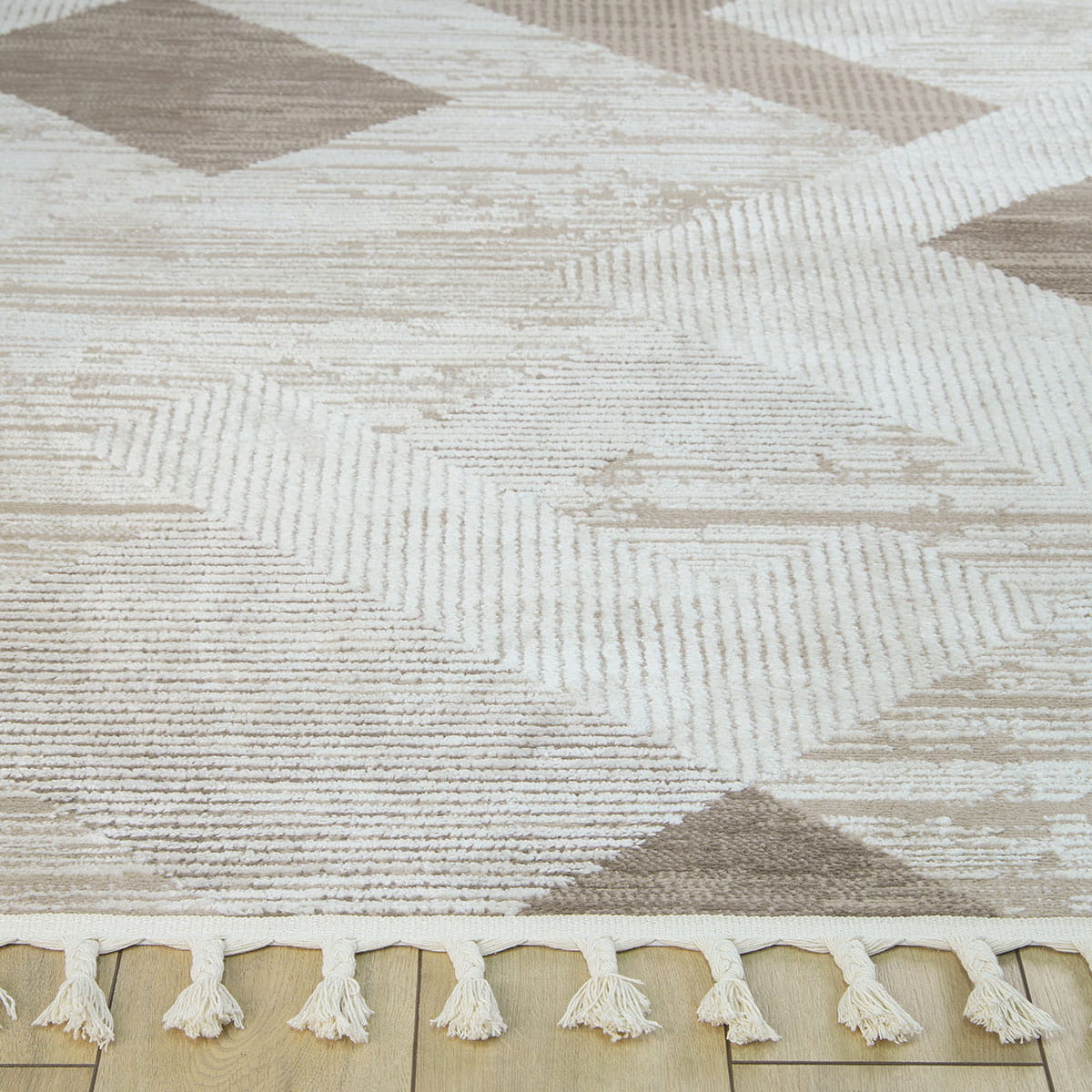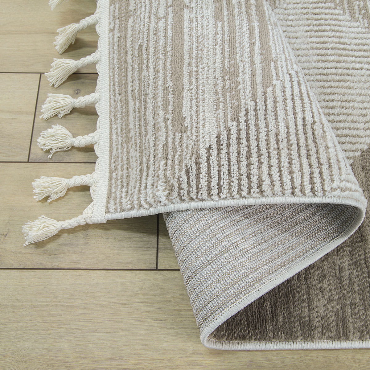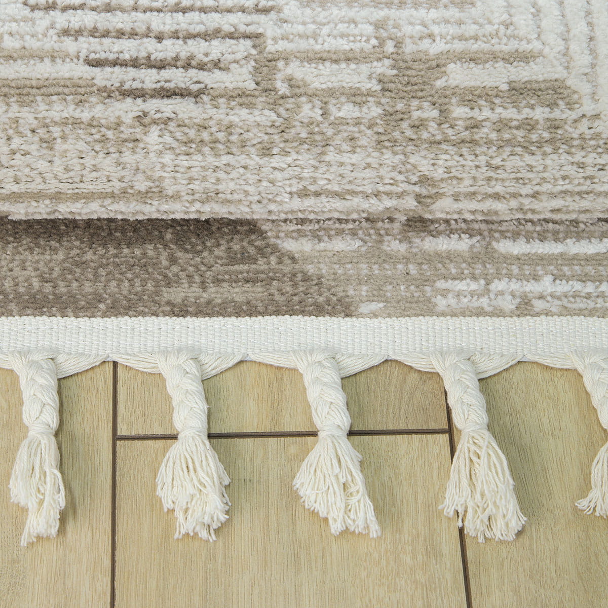 Wchodząc na ten dywan, poczujesz miękkość pod stopami, która otuli Cię przyjemnym ciepłem. Runo o różnej wysokości nie tylko zapewnia niesamowity komfort, ale również dodaje tekstury i głębi. Dodatkowo, dywany te lekko połyskują w zależności od ułożenia runa i kąta padania światła, co nadaje im elegancji i sprawia, że wyglądają jeszcze bardziej luksusowo. Frędzle dopełniają całość, podkreślając wyjątkowy charakter dywanu.