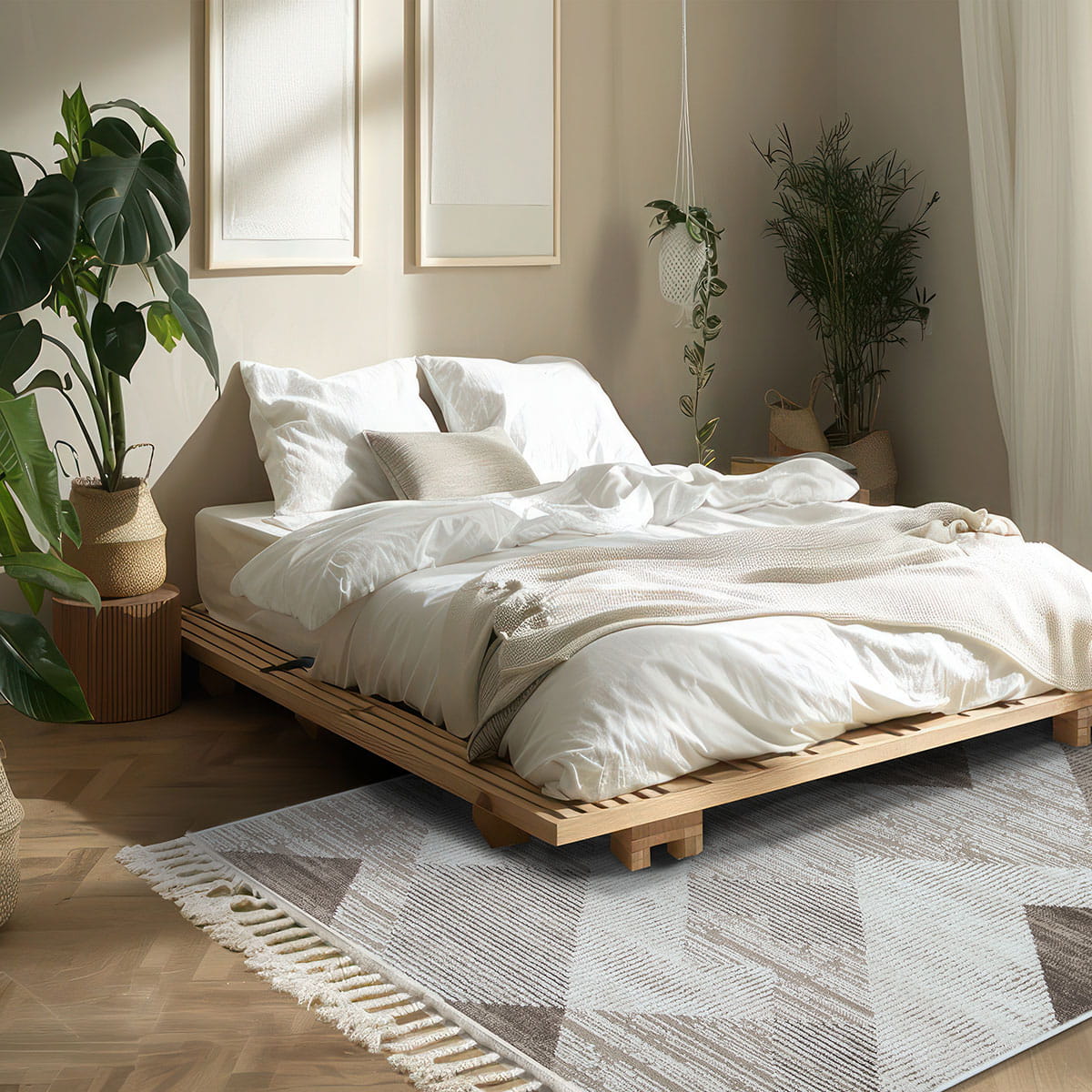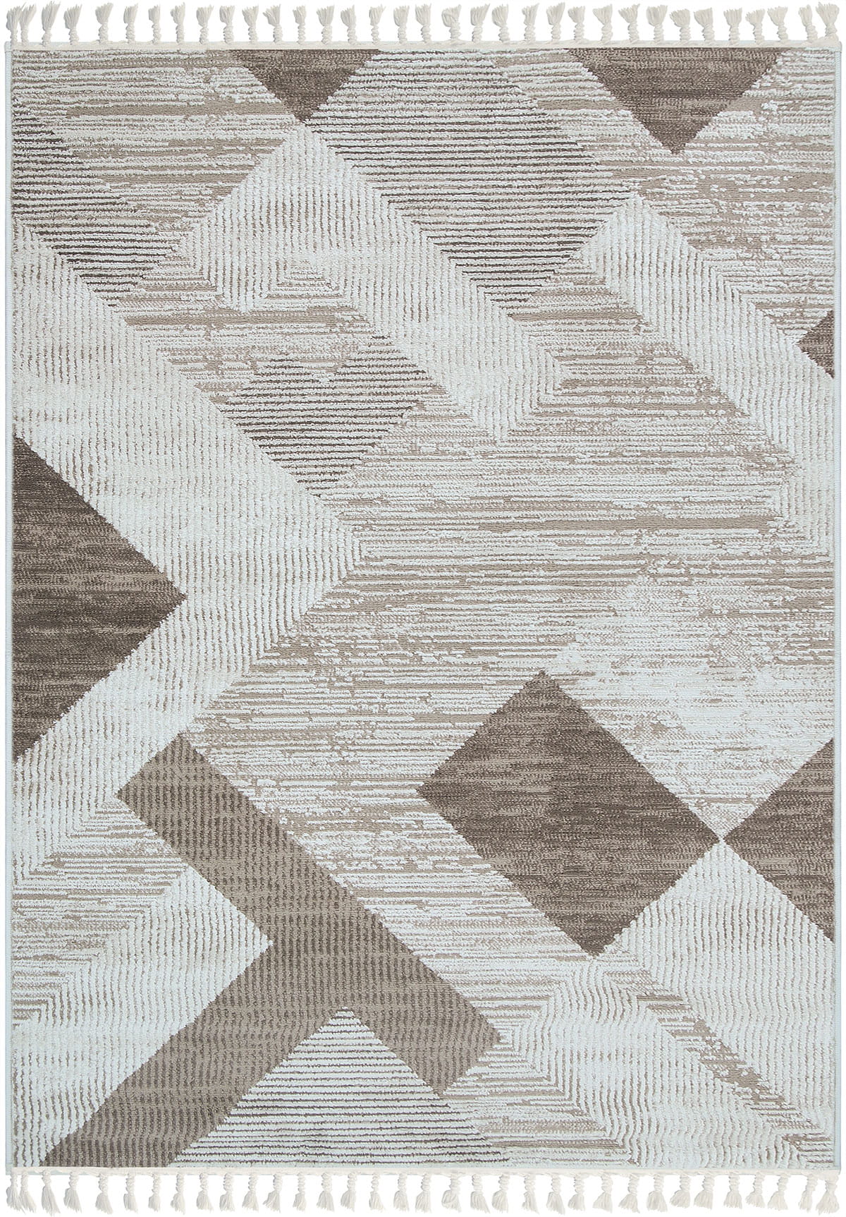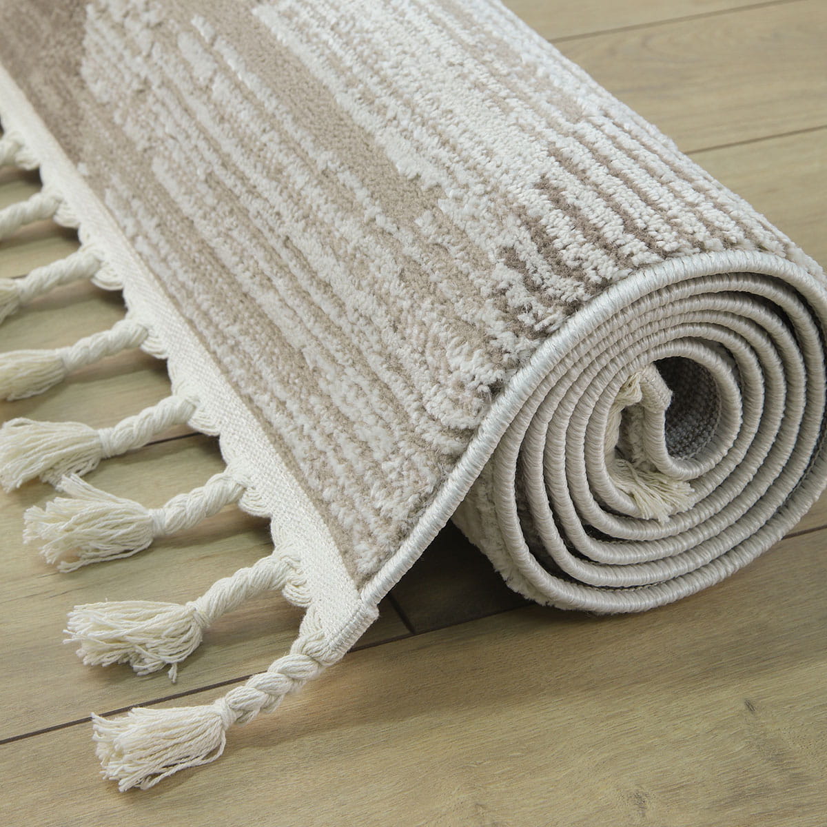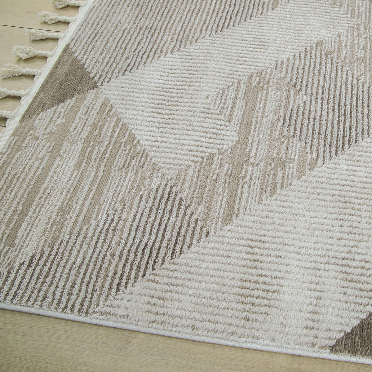 Wchodząc na ten dywan, poczujesz miękkość pod stopami, która otuli Cię przyjemnym ciepłem. Runo o różnej wysokości nie tylko zapewnia niesamowity komfort, ale również dodaje tekstury i głębi. Dodatkowo, dywany te lekko połyskują w zależności od ułożenia runa i kąta padania światła, co nadaje im elegancji i sprawia, że wyglądają jeszcze bardziej luksusowo. Frędzle dopełniają całość, podkreślając wyjątkowy charakter dywanu.