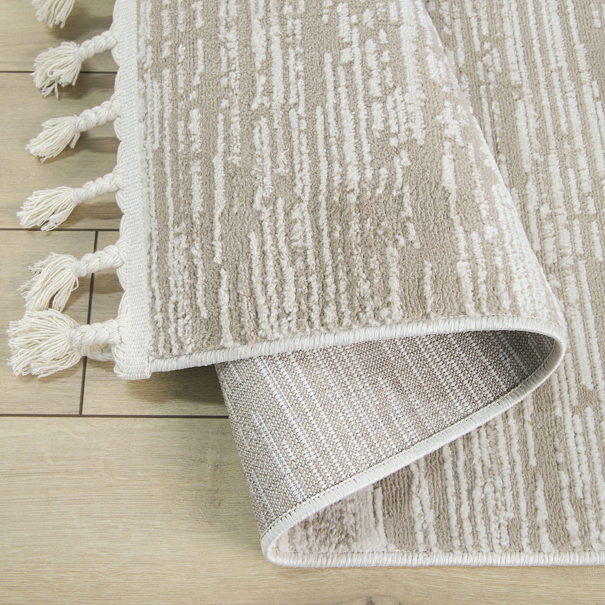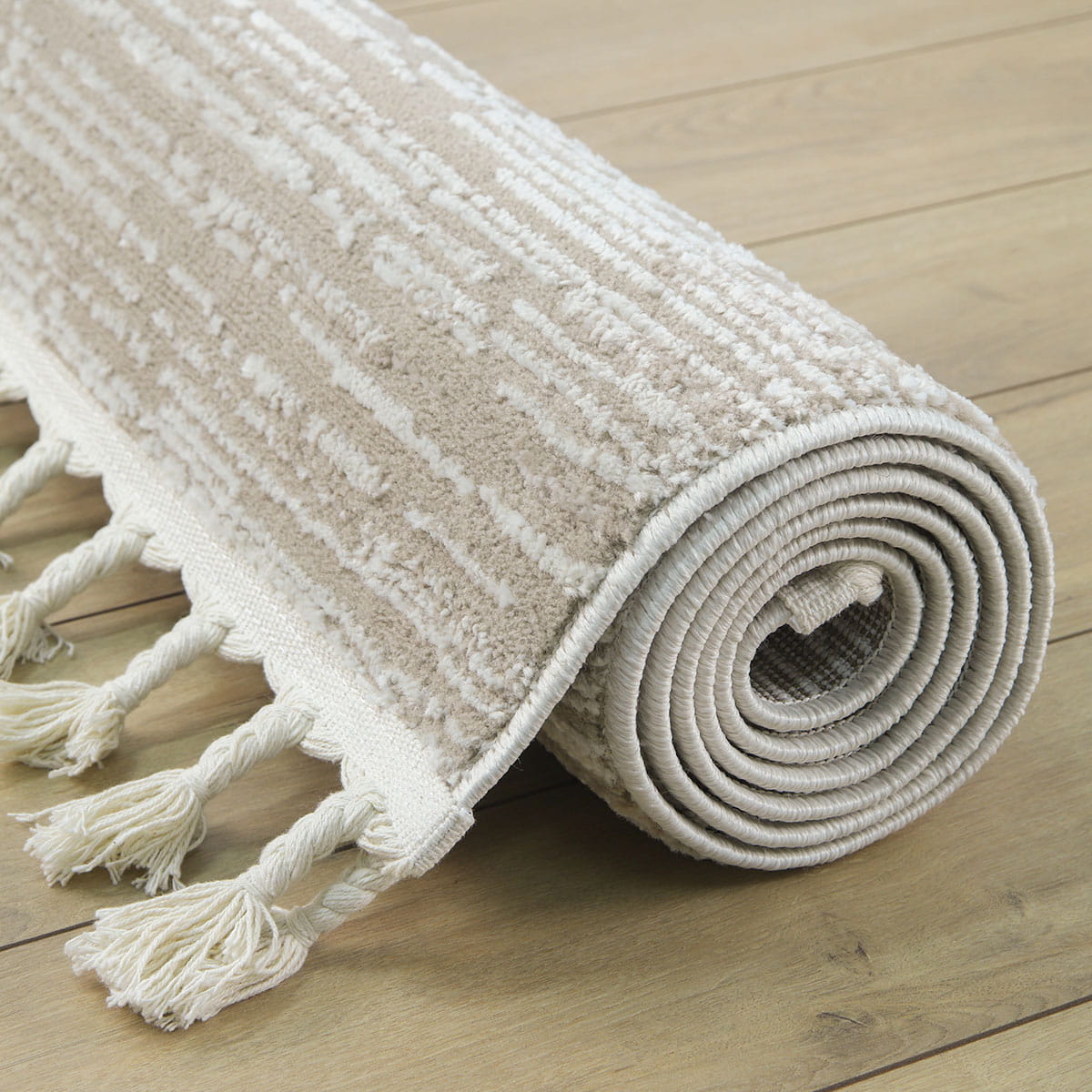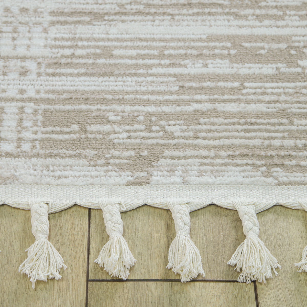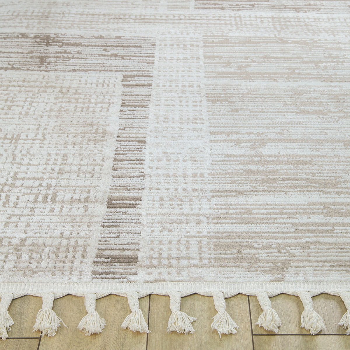 Wchodząc na ten dywan, poczujesz miękkość pod stopami, która otuli Cię przyjemnym ciepłem. Runo o różnej wysokości nie tylko zapewnia niesamowity komfort, ale również dodaje tekstury i głębi. Dodatkowo, dywany te lekko połyskują w zależności od ułożenia runa i kąta padania światła, co nadaje im elegancji i sprawia, że wyglądają jeszcze bardziej luksusowo. Frędzle dopełniają całość, podkreślając wyjątkowy charakter dywanu.