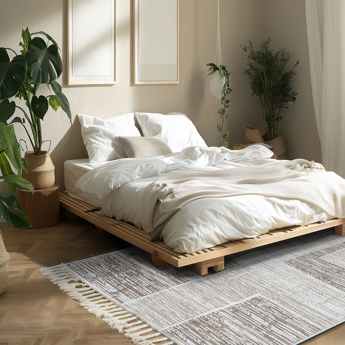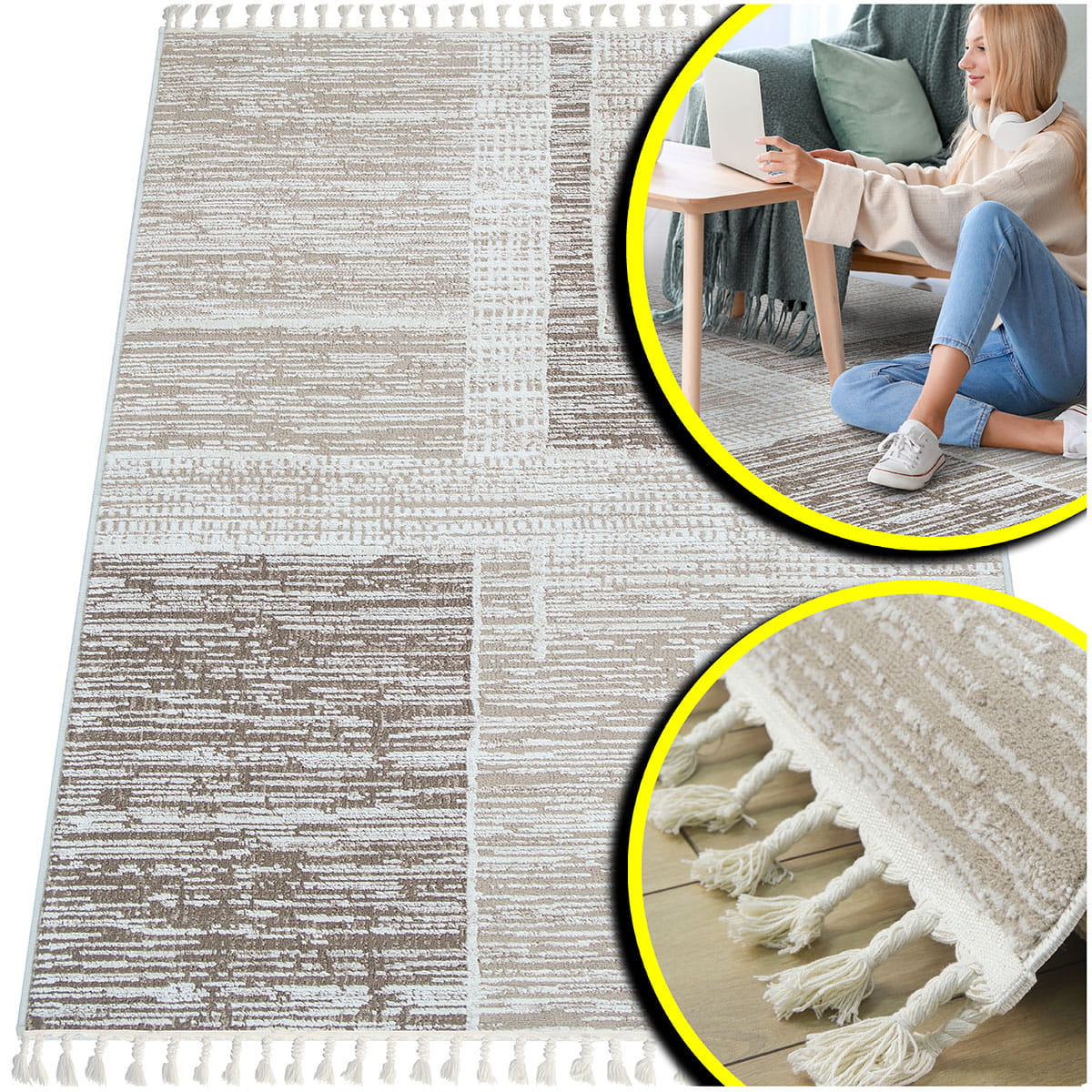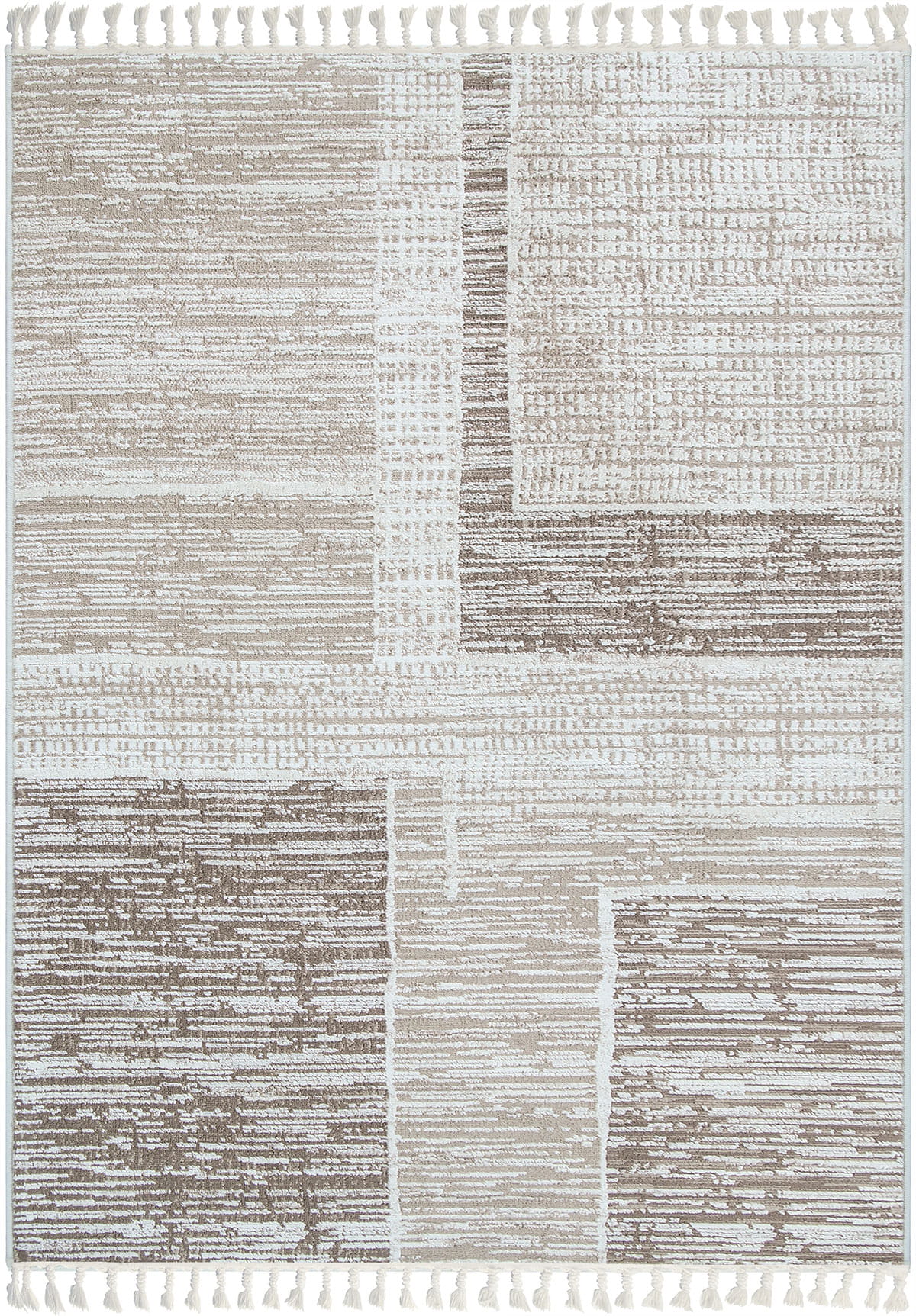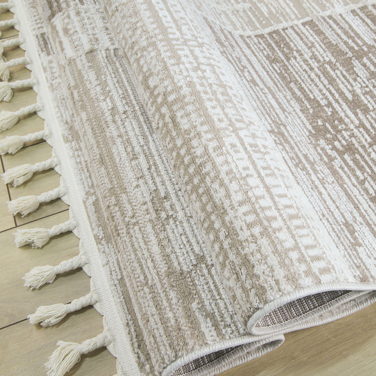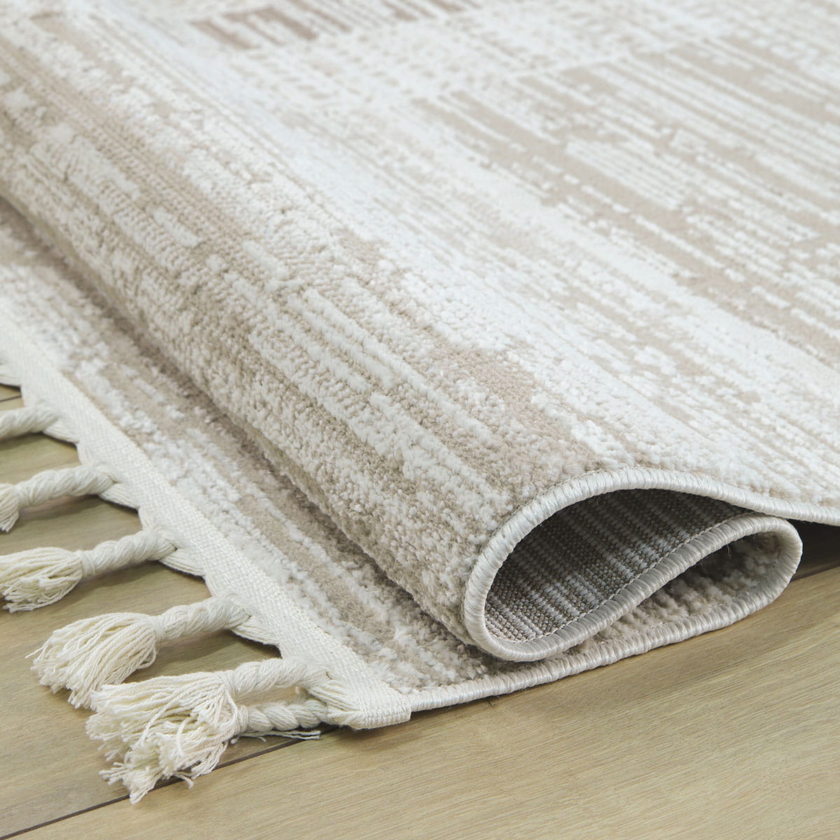 Wchodząc na ten dywan, poczujesz miękkość pod stopami, która otuli Cię przyjemnym ciepłem. Runo o różnej wysokości nie tylko zapewnia niesamowity komfort, ale również dodaje tekstury i głębi. Dodatkowo, dywany te lekko połyskują w zależności od ułożenia runa i kąta padania światła, co nadaje im elegancji i sprawia, że wyglądają jeszcze bardziej luksusowo. Frędzle dopełniają całość, podkreślając wyjątkowy charakter dywanu.