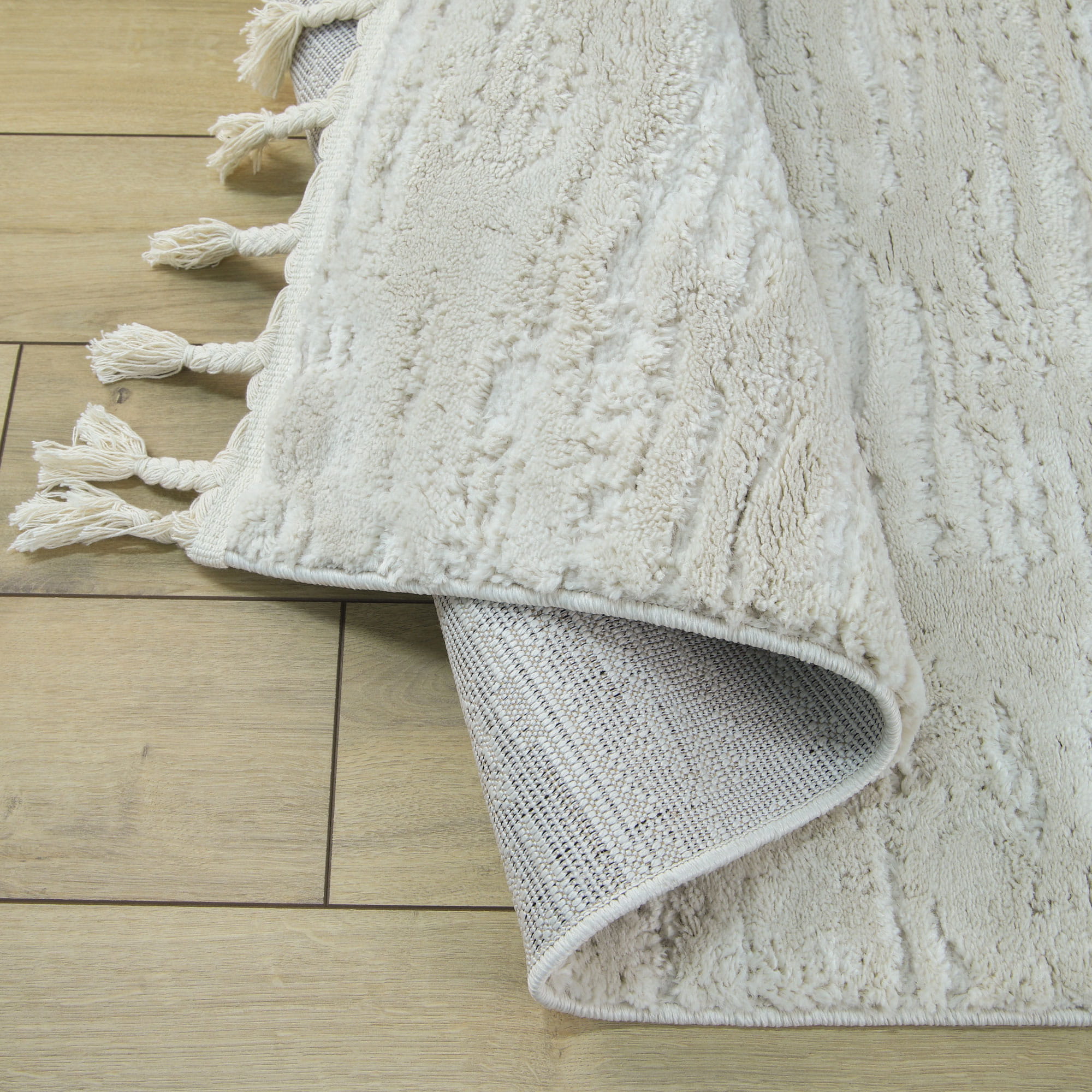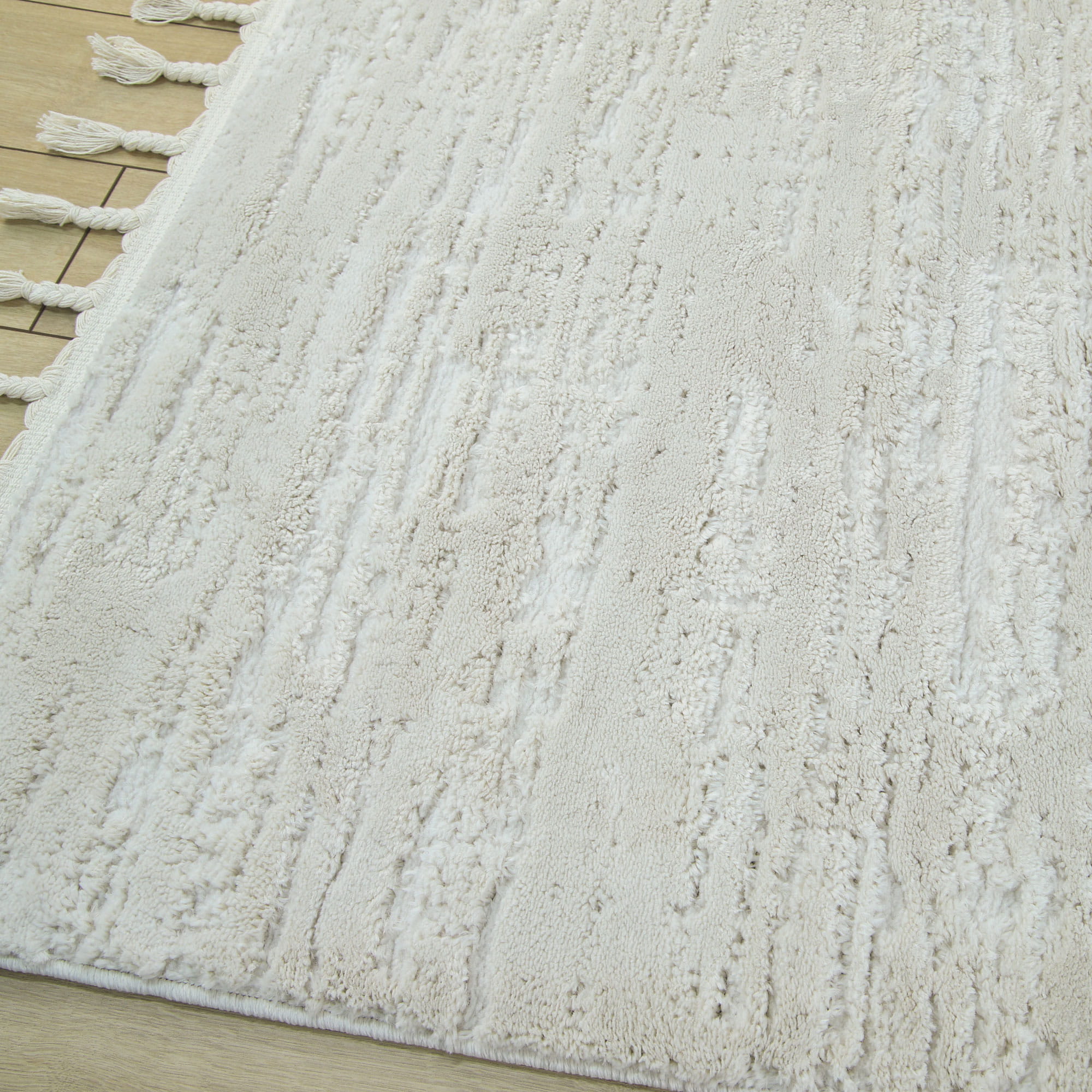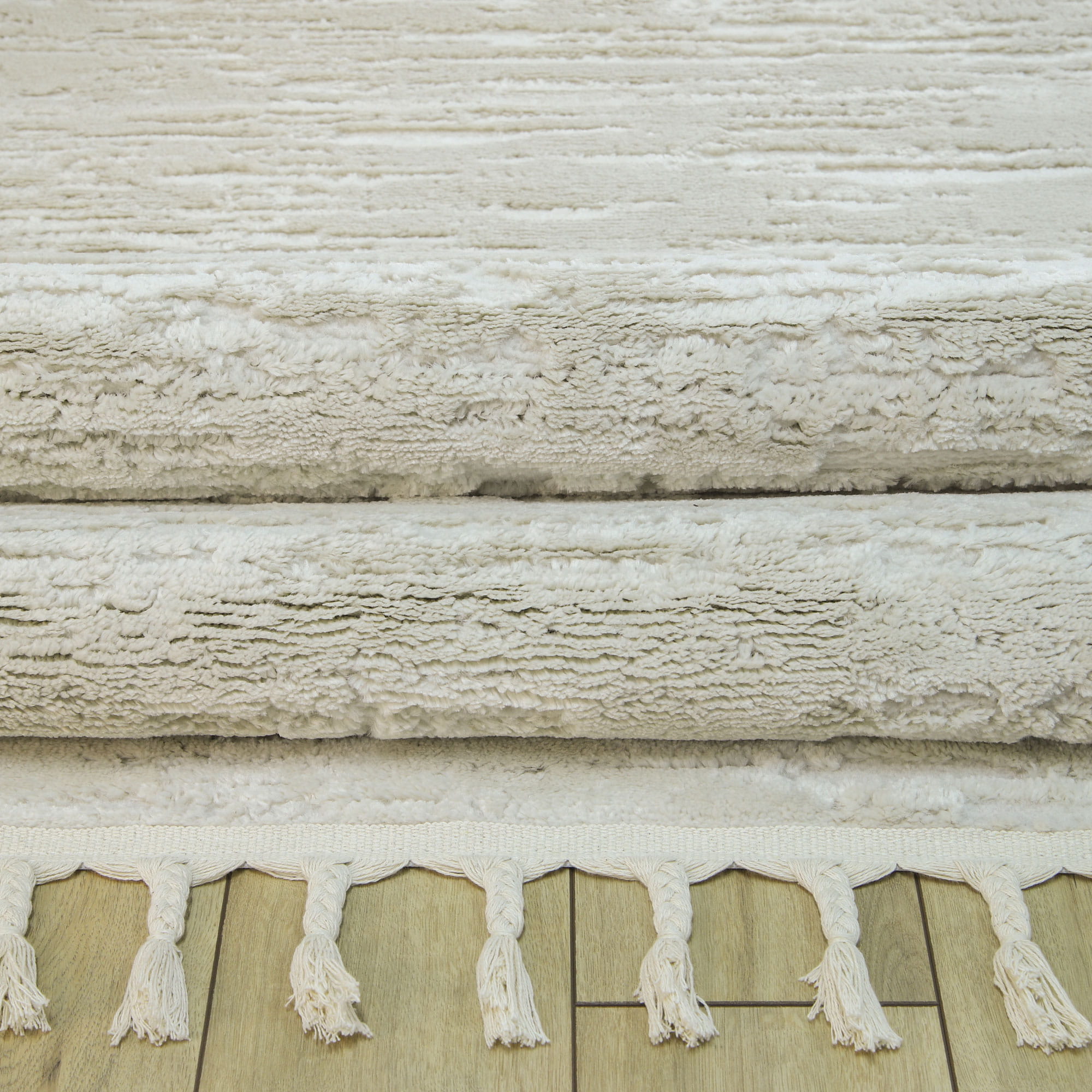 Wchodząc na ten dywan, poczujesz miękkość pod stopami, która otuli Cię przyjemnym ciepłem. Runo o różnej wysokości nie tylko zapewnia niesamowity komfort, ale również dodaje tekstury i głębi. Dodatkowo, dywany te lekko połyskują w zależności od ułożenia runa i kąta padania światła, co nadaje im elegancji i sprawia, że wyglądają jeszcze bardziej luksusowo. Frędzle dopełniają całość, podkreślając wyjątkowy charakter dywanu.
