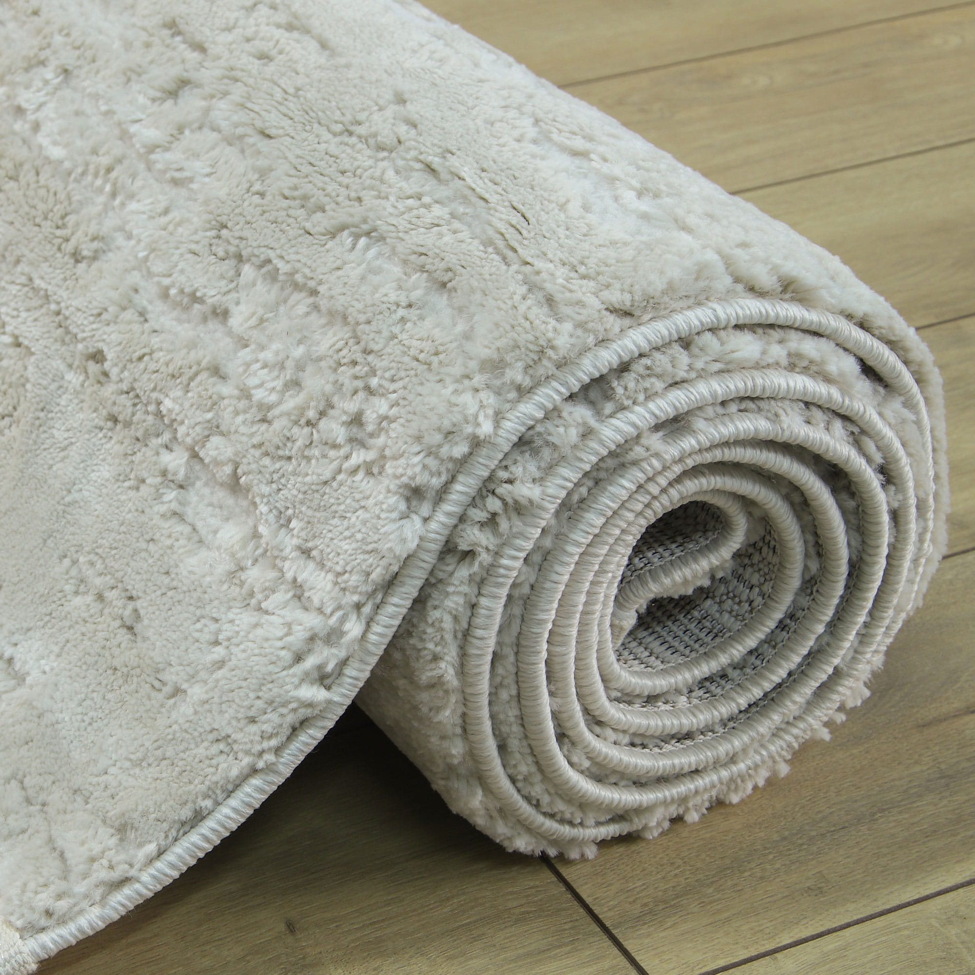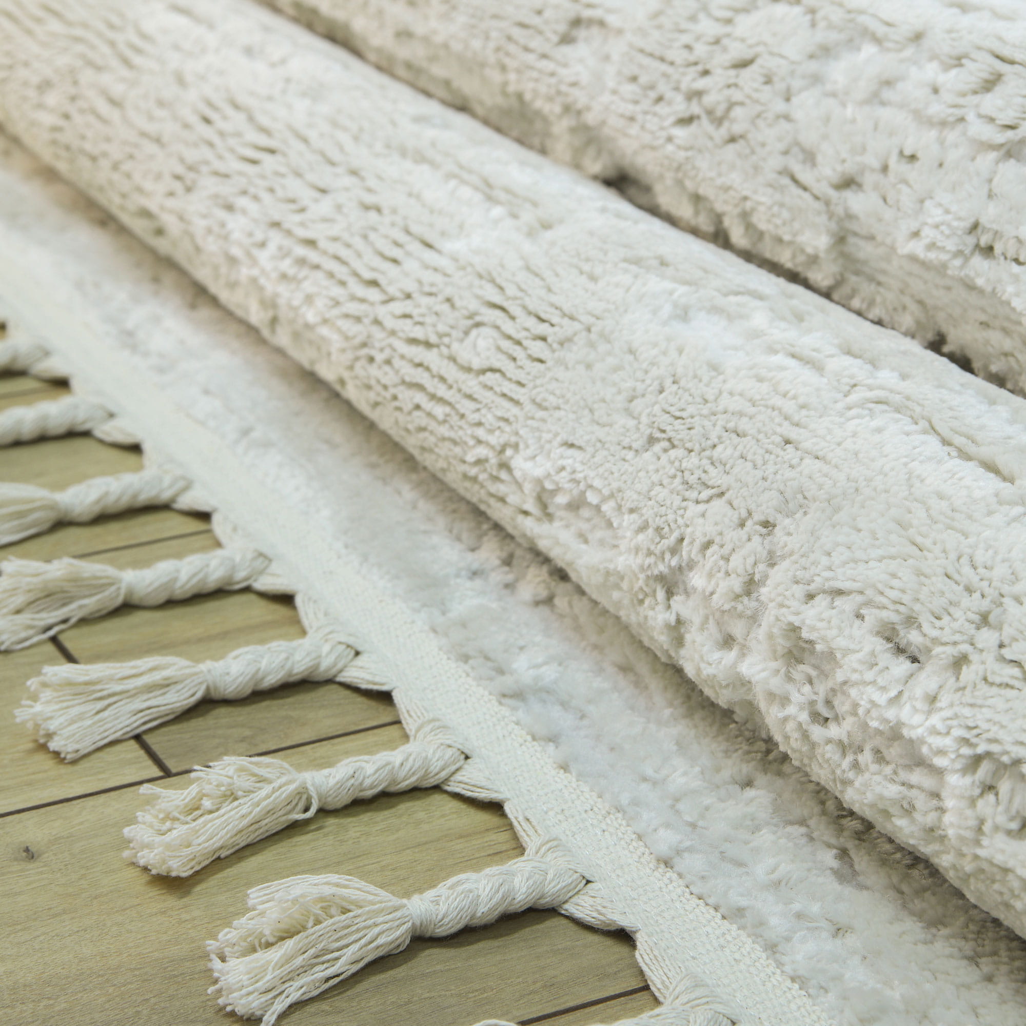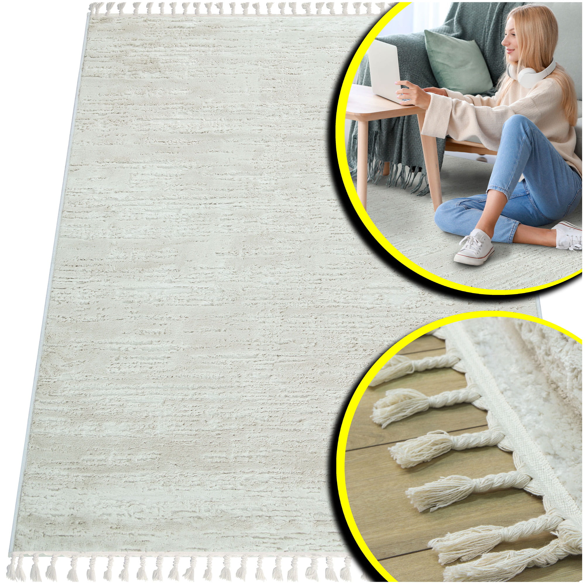 Wchodząc na ten dywan, poczujesz miękkość pod stopami, która otuli Cię przyjemnym ciepłem. Runo o różnej wysokości nie tylko zapewnia niesamowity komfort, ale również dodaje tekstury i głębi. Dodatkowo, dywany te lekko połyskują w zależności od ułożenia runa i kąta padania światła, co nadaje im elegancji i sprawia, że wyglądają jeszcze bardziej luksusowo. Frędzle dopełniają całość, podkreślając wyjątkowy charakter dywanu.
