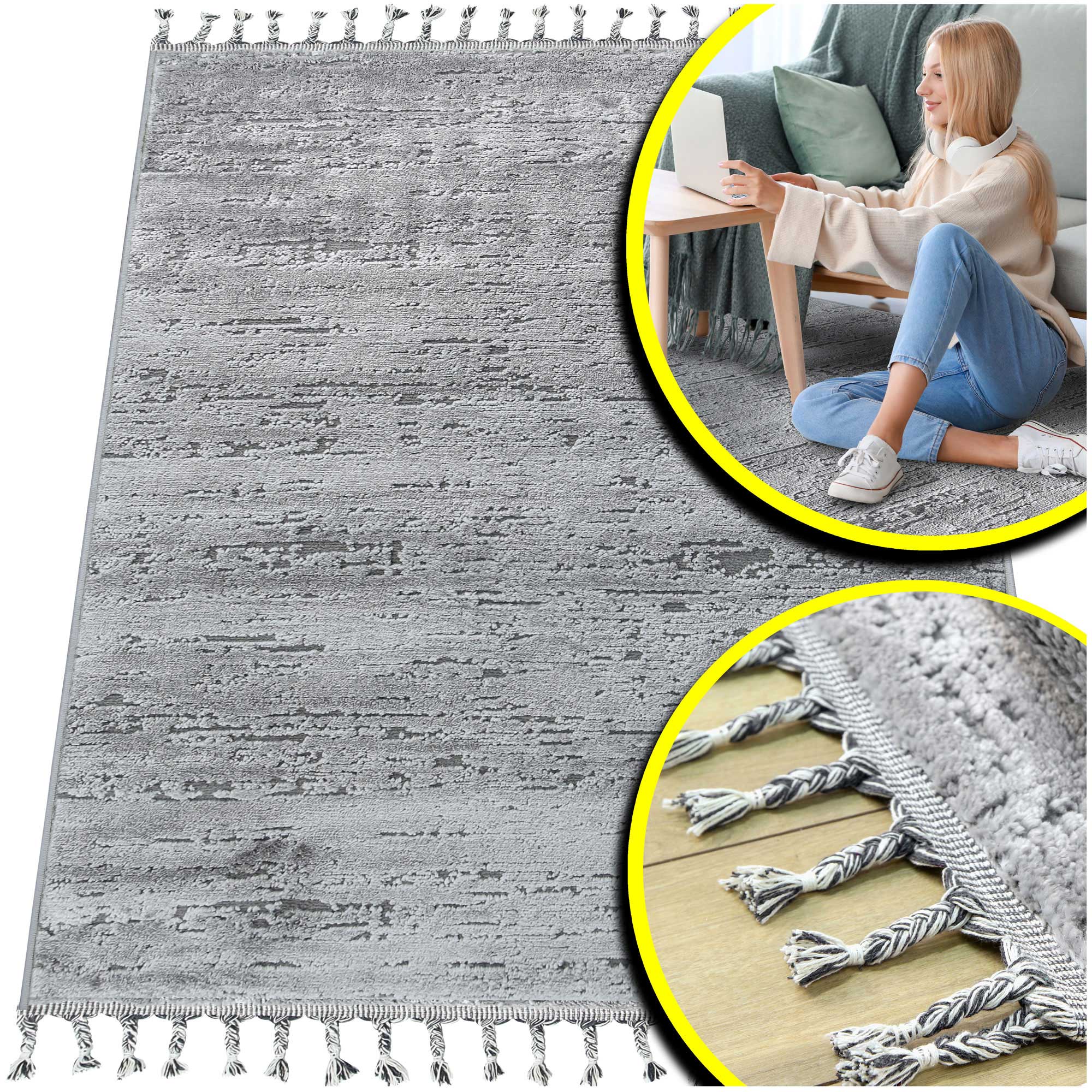 Wchodząc na ten dywan, poczujesz miękkość pod stopami, która otuli Cię przyjemnym ciepłem. Runo o różnej wysokości nie tylko zapewnia niesamowity komfort, ale również dodaje tekstury i głębi. Dodatkowo, dywany te lekko połyskują w zależności od ułożenia runa i kąta padania światła, co nadaje im elegancji i sprawia, że wyglądają jeszcze bardziej luksusowo. Frędzle dopełniają całość, podkreślając wyjątkowy charakter dywanu.