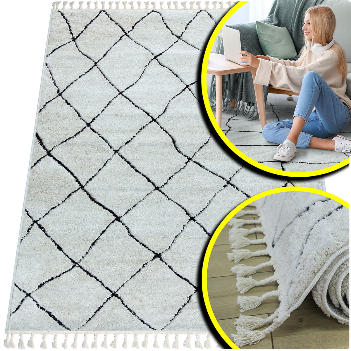 PUSZYSTY DYWAN DO SALONU TYPU SHAGGY - DYWAN MELANŻ- SIENNA (9012A bone/black), 60x110