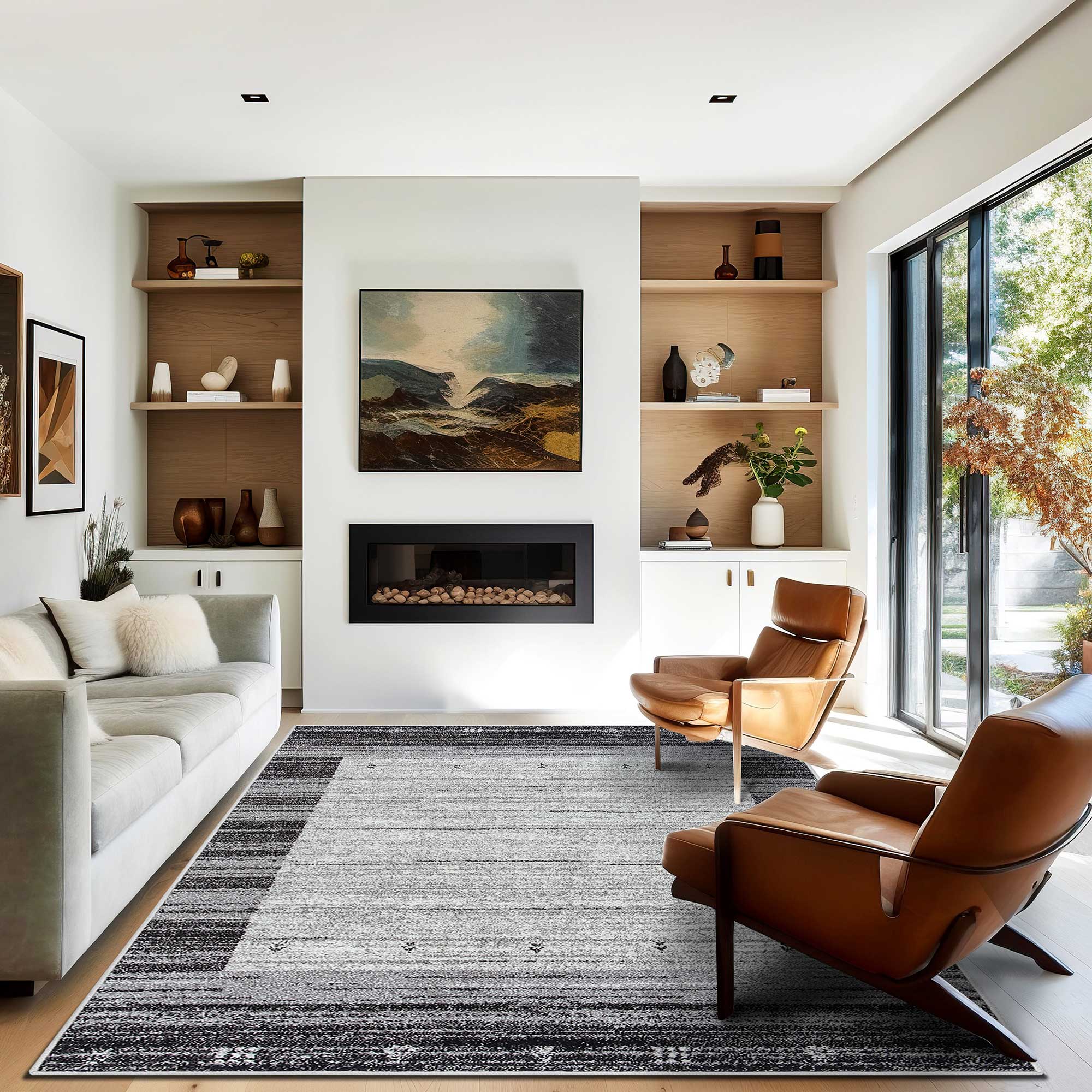 Geometryczne, stonowane kolorystycznie wzory dywanu doskonale podkreślą styl i dodadzą charakteru Państwa mieszkaniu.