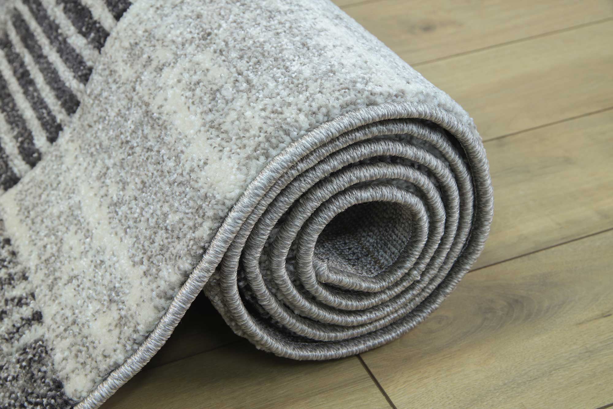 Geometryczne, stonowane kolorystycznie wzory dywanu doskonale podkreślą styl i dodadzą charakteru Państwa mieszkaniu.
