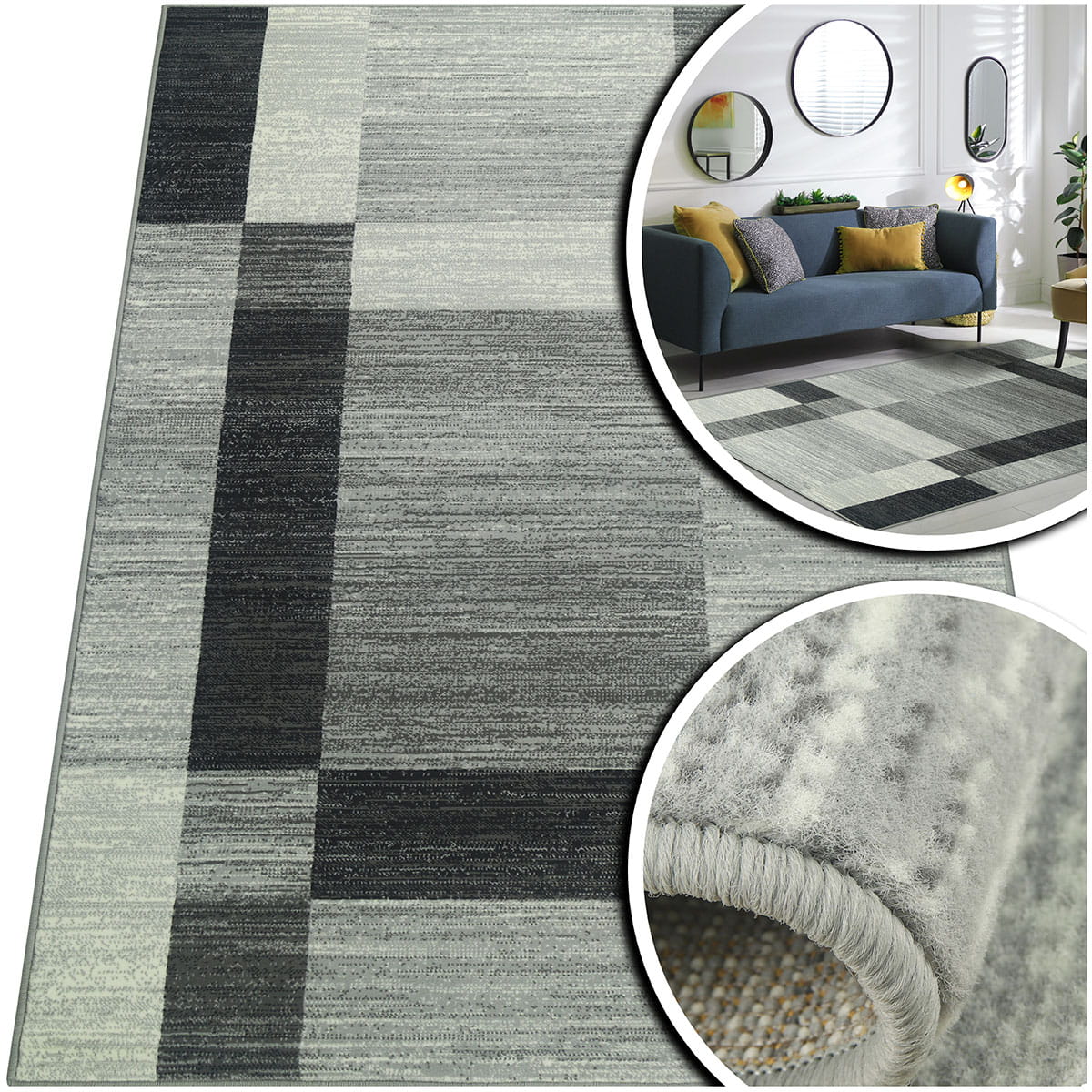 SZARY DYWAN DO SALONU VENEZIA - CZARNY DYWAN DO PRZEDPOKOJU - BEŻOWY (704626 89944 mouse), 200x400 cm