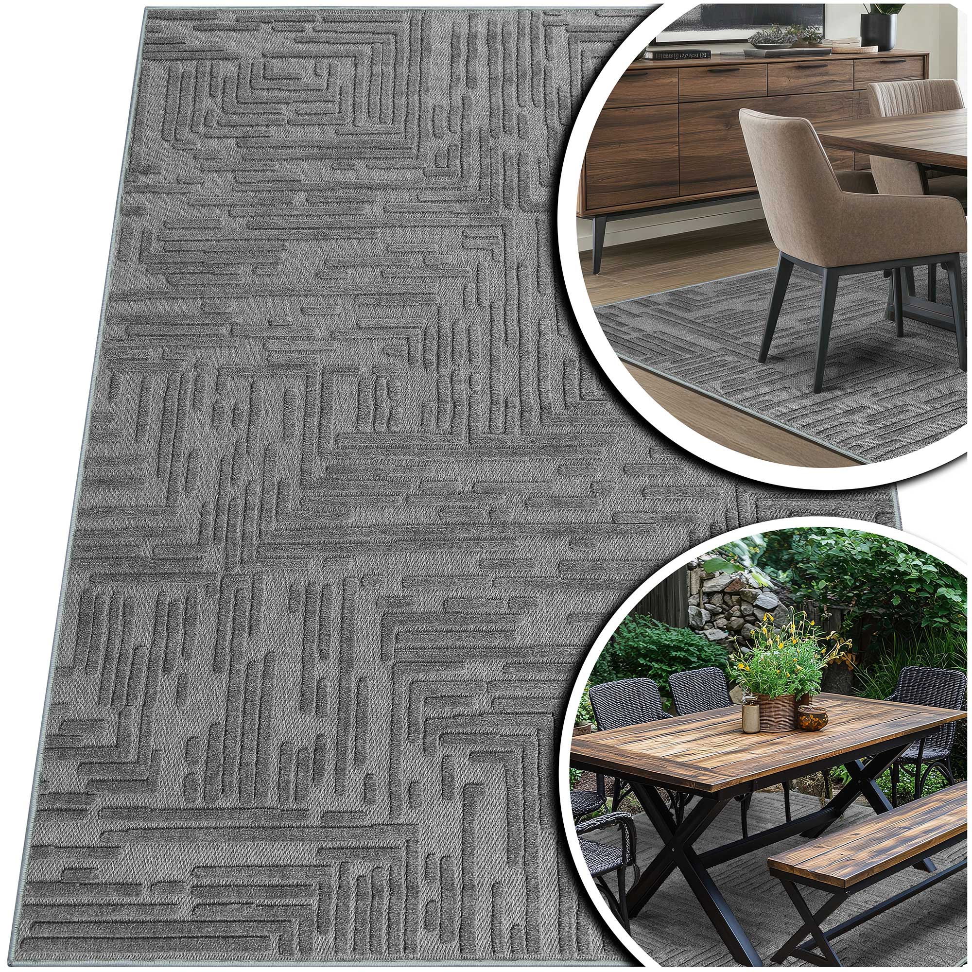 SZARY DYWAN ZEWNĘTRZNY DYWAN DO SALONU CZARNY DYWAN NA TARAS – MEDUZA (A185A gri), 120x170 cm