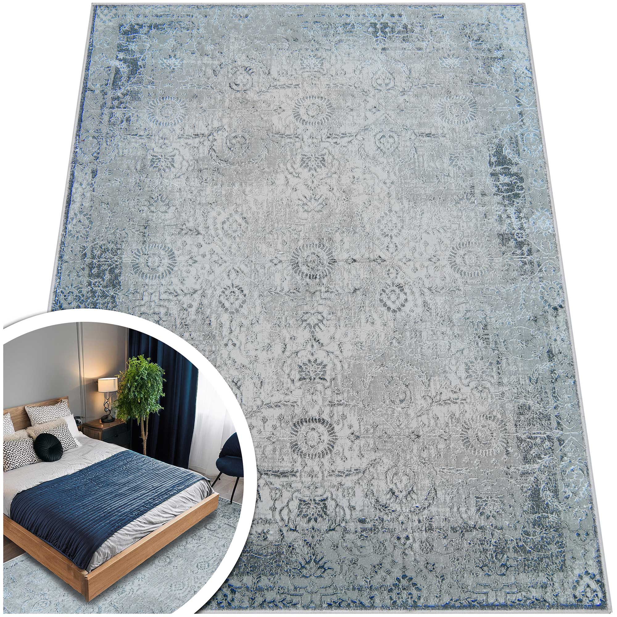 Odkryj wyjątkowe dywany w odcieniach eleganckiej szarości z subtelnymi granatowymi akcentami. Wykonane z najwyższej jakości materiałów, zachwycają ponadczasowymi, klasyczno-orientalnymi wzorami. Ich niskie runo ułatwia czyszczenie, sprawiając, że doskonale nadają się do użytku rónież w domach z robotami sprzątającymi.