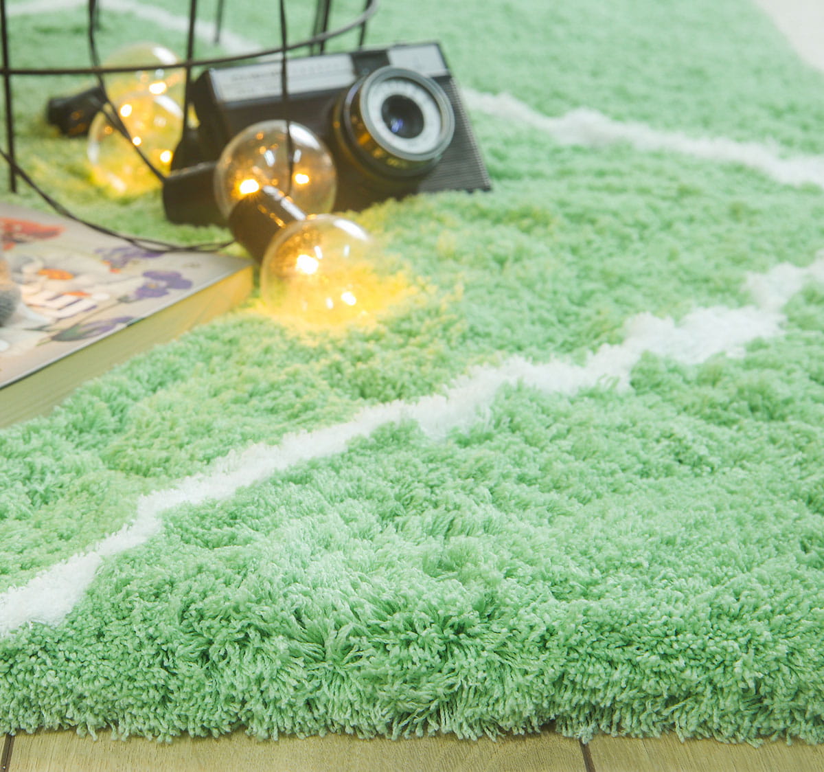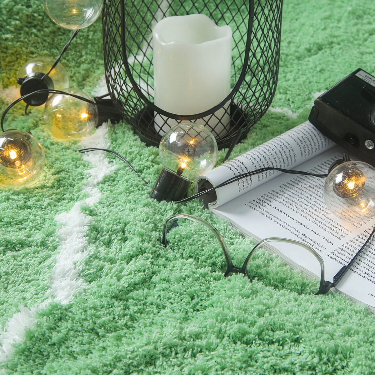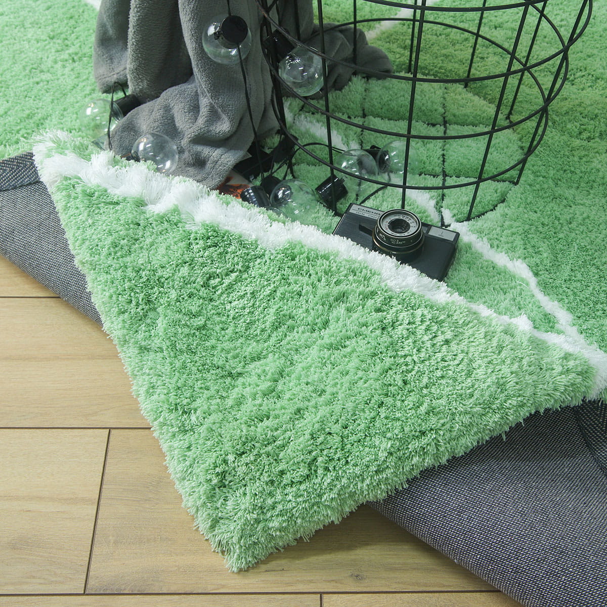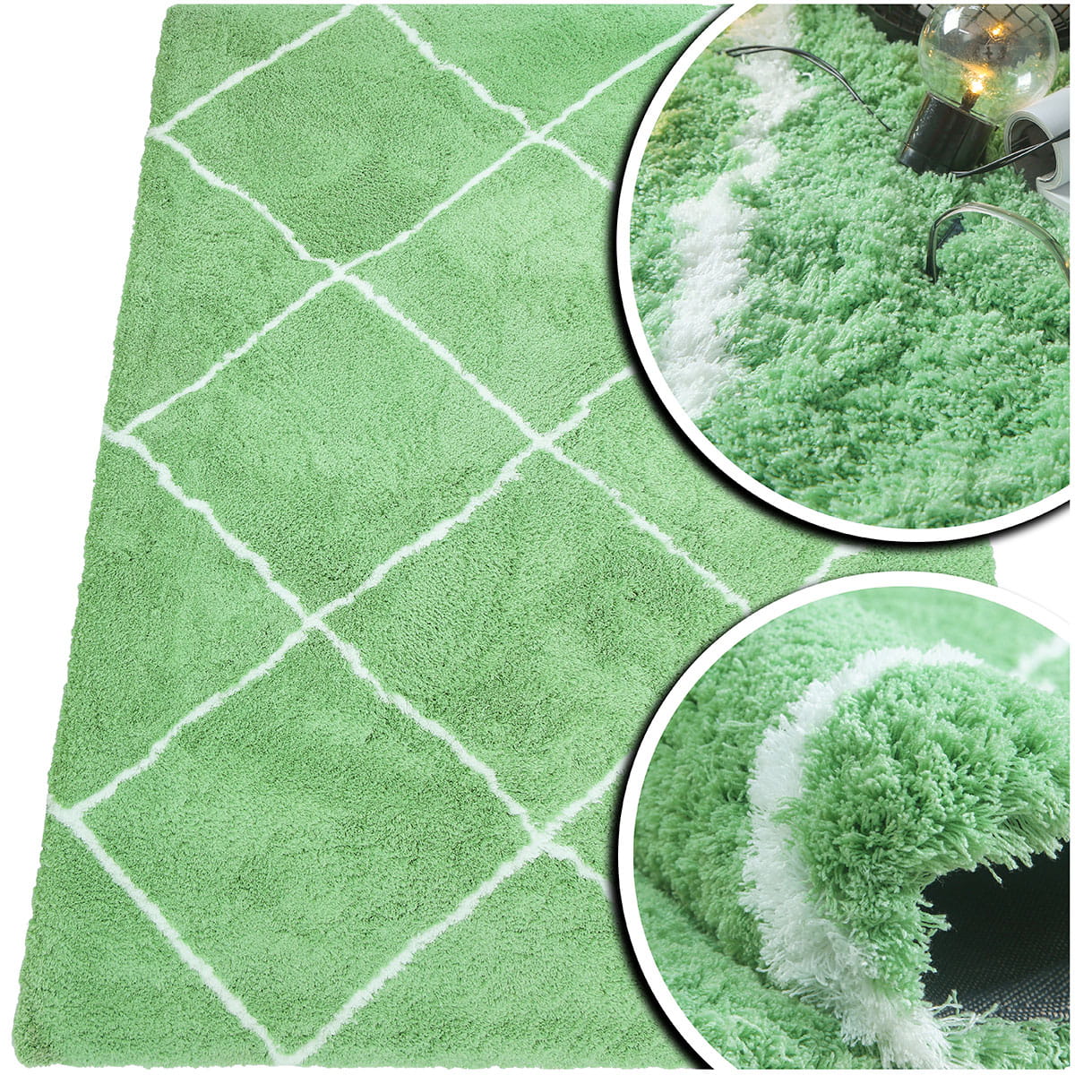 ZIELONY DYWAN DO SALONU SHAGGY PUSZYSTY DYWANIK DO SYPIALNI VELVET (V1022 mint-white), 200x290 cm