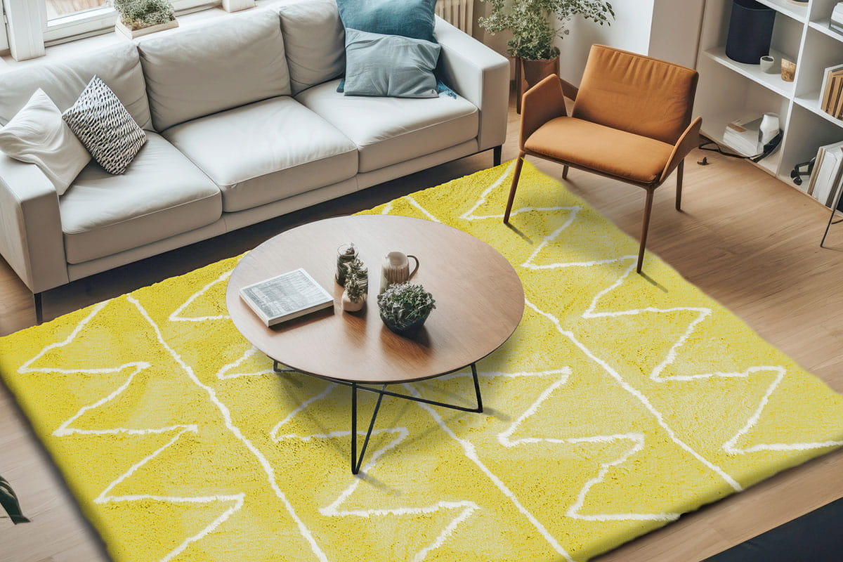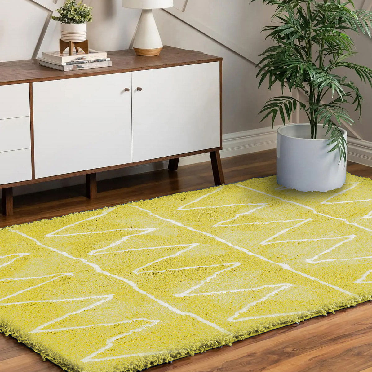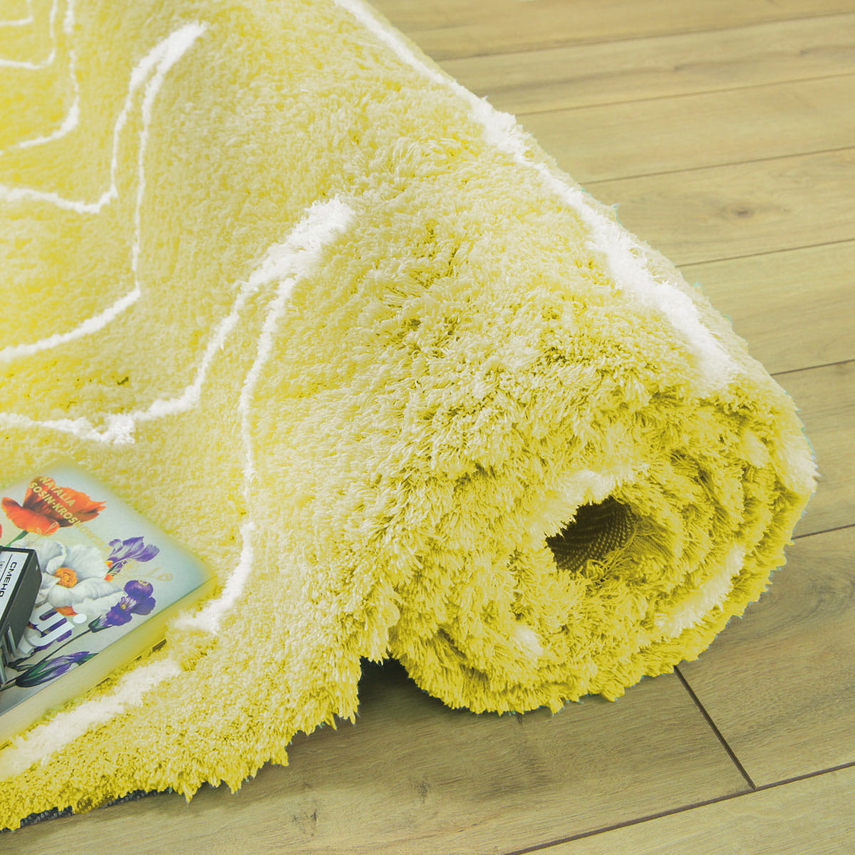 ŻÓŁTY DYWAN DO SALONU SHAGGY PUSZYSTY DYWANIK DO SYPIALNI VELVET (V1033 yellow-white), 160x220 cm
